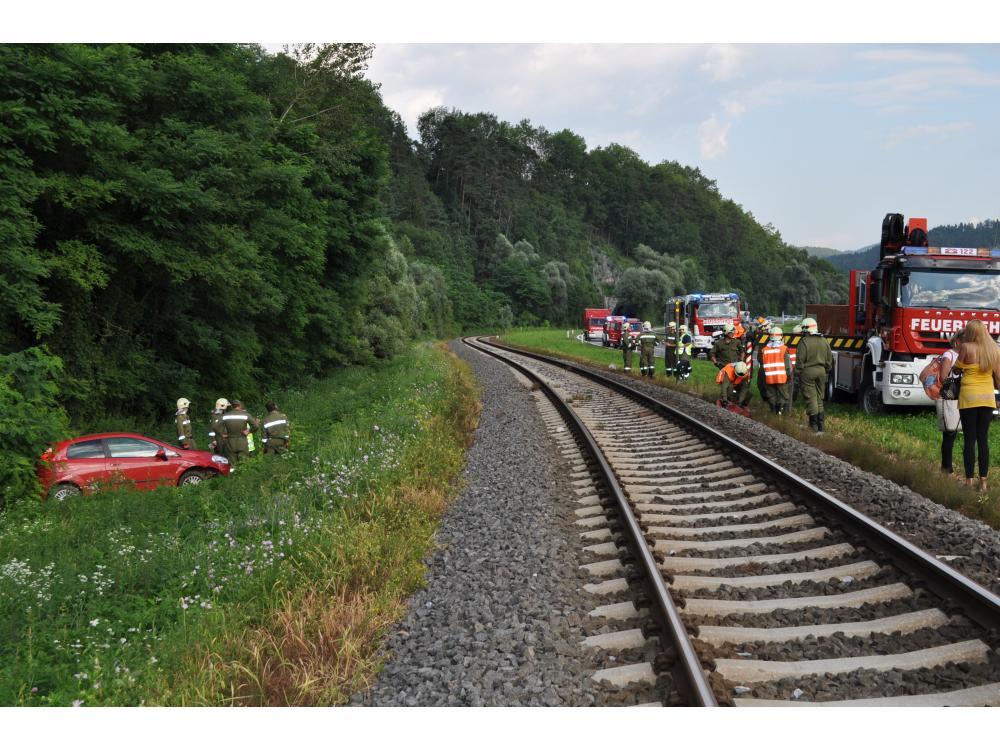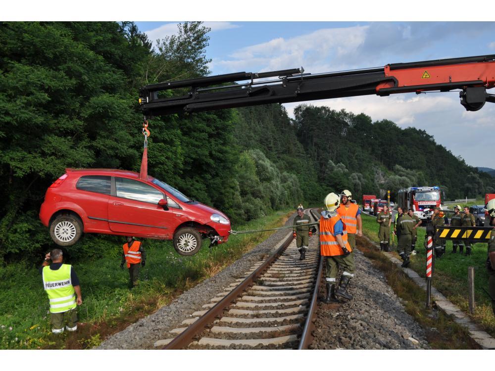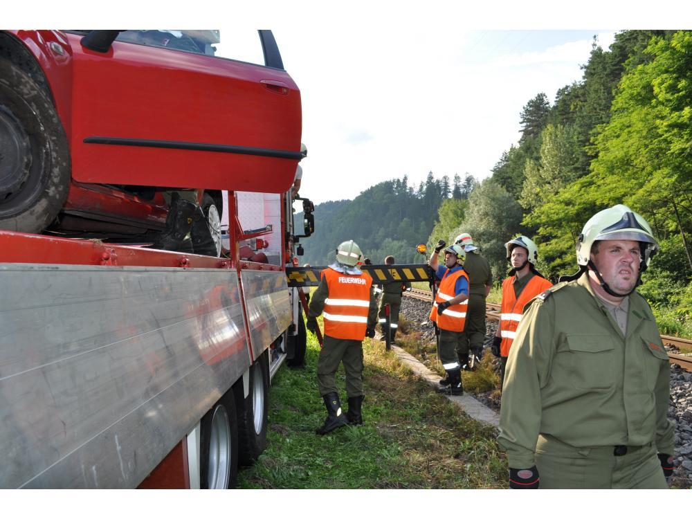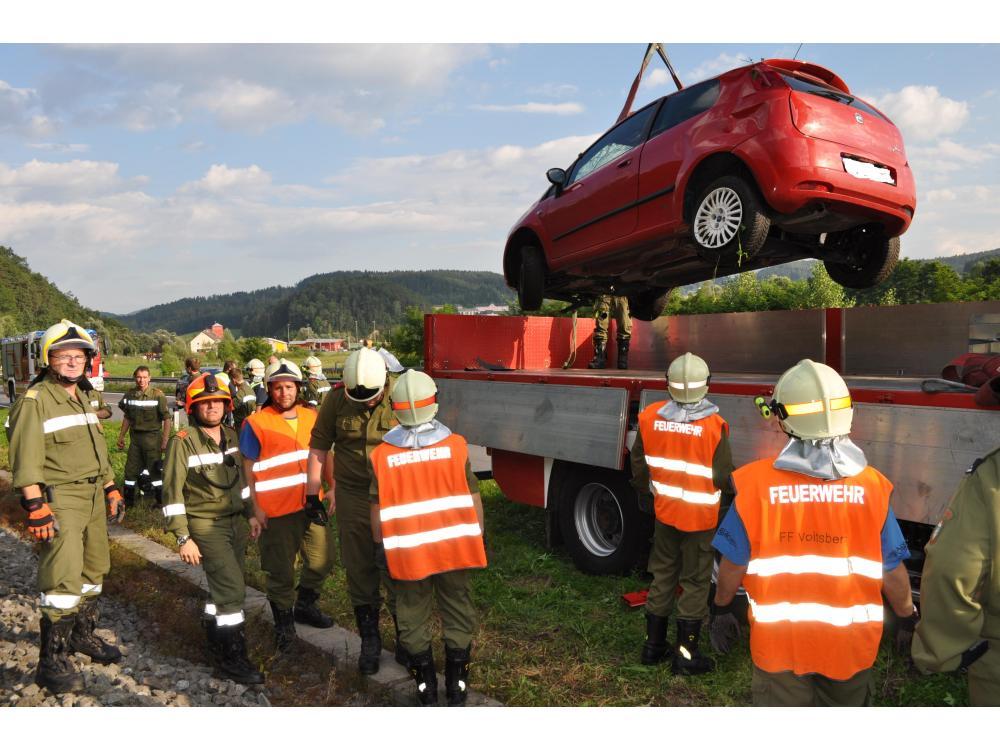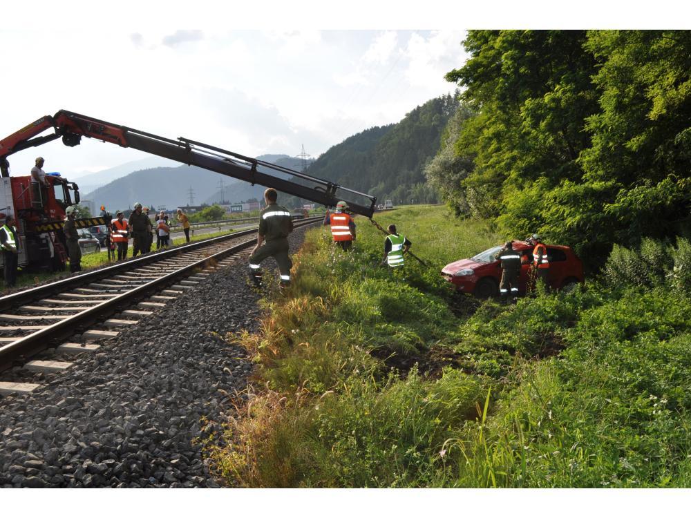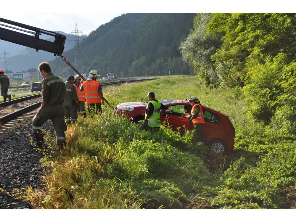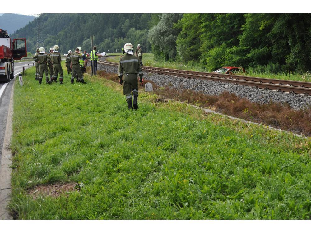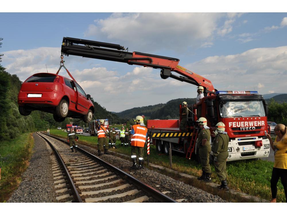 VOITSBERG, am 26.07.2012 Aus ungeklärter Ursache geriet ein PKW auf der B 70 zwischen Rosental und Köflach rechts von der Straße ab, schlitterte über den Gleiskörper der GKB, überschlug sich und kam auf den Rädern neben dem Bahnkörper zu stehen. Die sich im PKW befindlichen Personen konnten sich unverletzt aus dem stark beschädigten Fahrzeug befreien und die Hilfskräfte alarmieren. Die Züge konnten während der Bergungsarbeiten die Unfallstelle nur im Schritttempo passieren. Das Fahrzeug wurde in Zusammenarbeit der Feuerwehren Rosental und Voitsberg mit dem WLF-Kran der Stadtfeuerwehr Voitsberg geborgen und abtransportiert. Die polizeilichen Erhebungen wurden von der Inspektion Köflach durchgeführt.