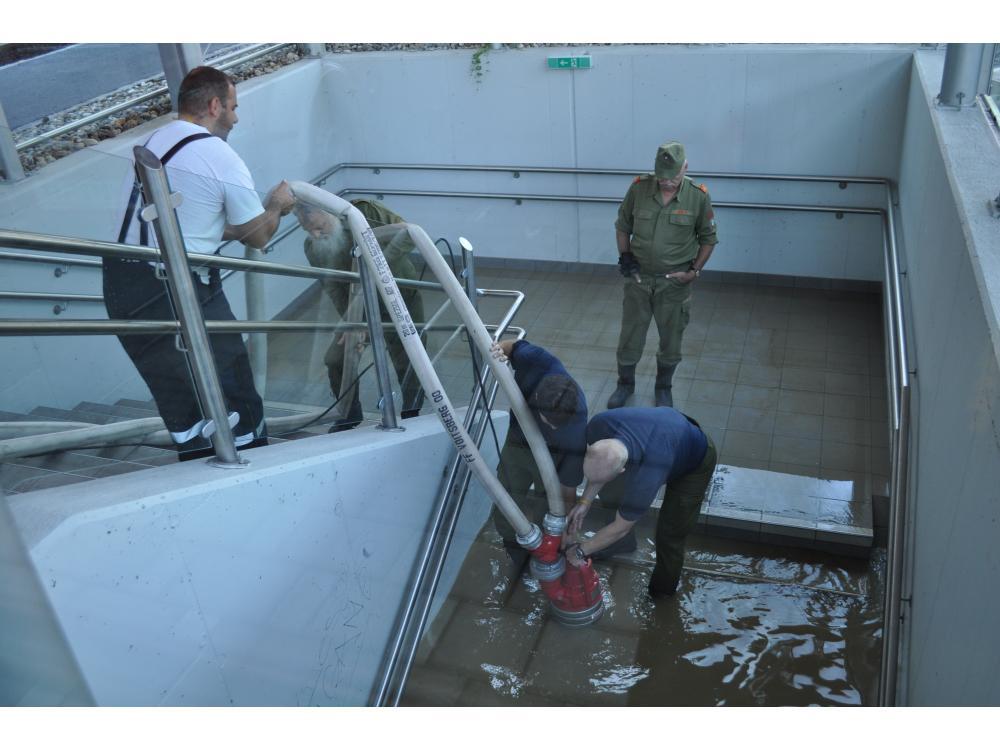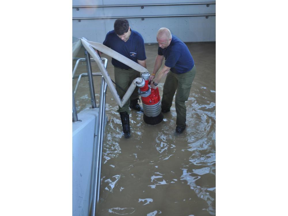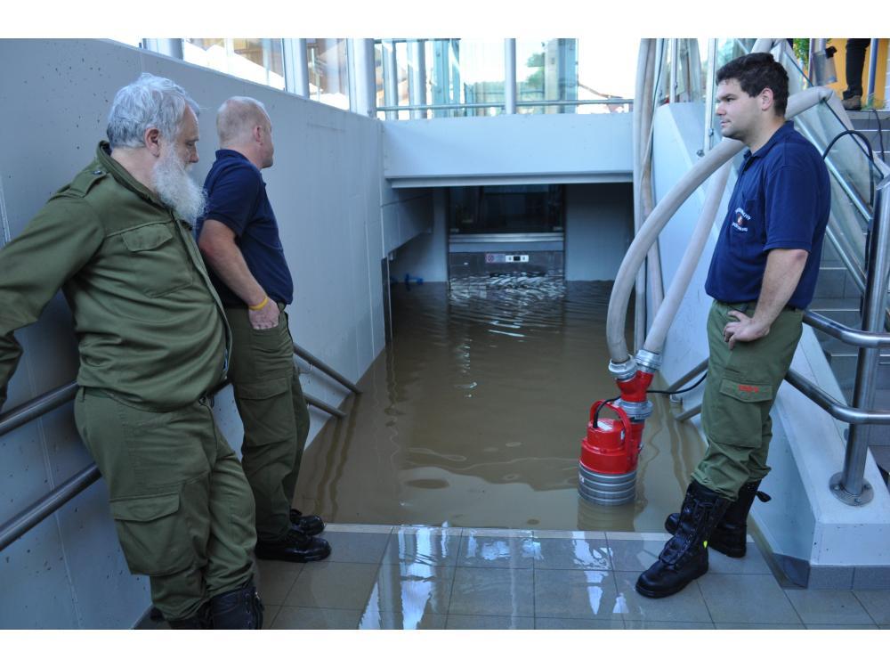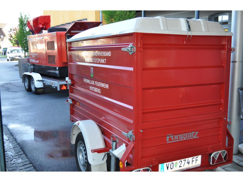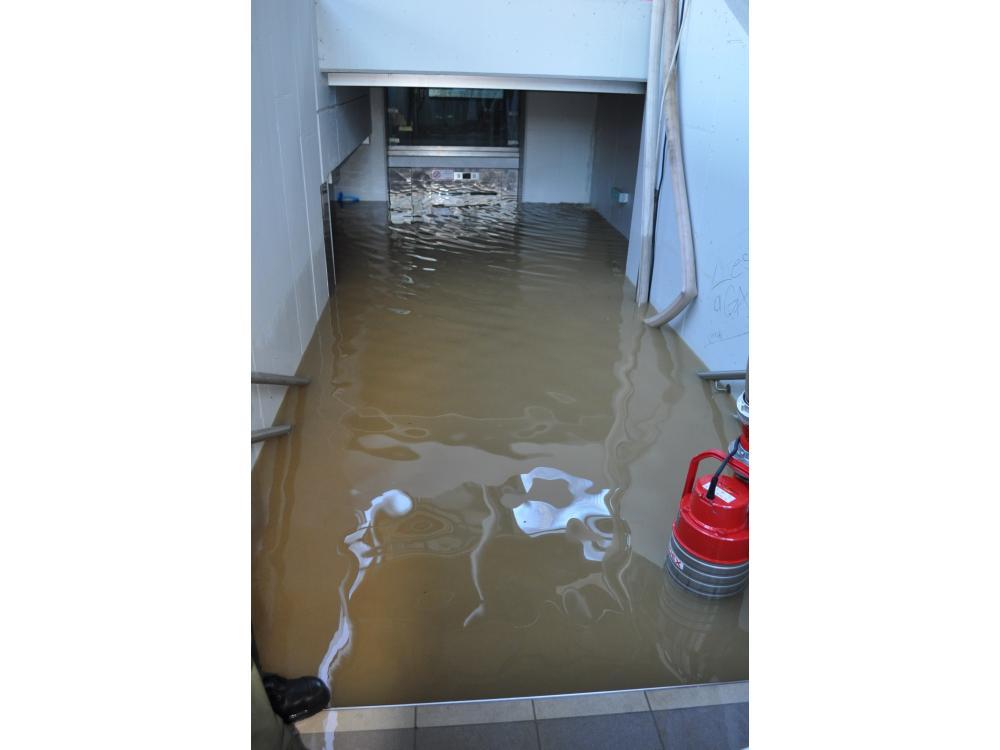 VOITSBERG, am 10.07.2012 Der Verbindungsgang zu den Bahnsteigen am Voitsberger Bahnhof war ca. 3 m unter Wasser. Zur Unterstützung der Stromversorgung wurde über die LLZ das STROMA der FF Lieboch angefordert, da das STROMA der FF Voitsberg auf Grund von Servicearbeiten nicht zur Verfügung stand. Mit zwei Groß-Tauchpumpen (Leistung je Pumpe = ca. 3000 Liter/Minute) wurde der Zugang zu den Bahnsteigen in ca. 90 Minuten wieder ermöglicht.