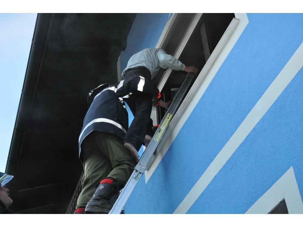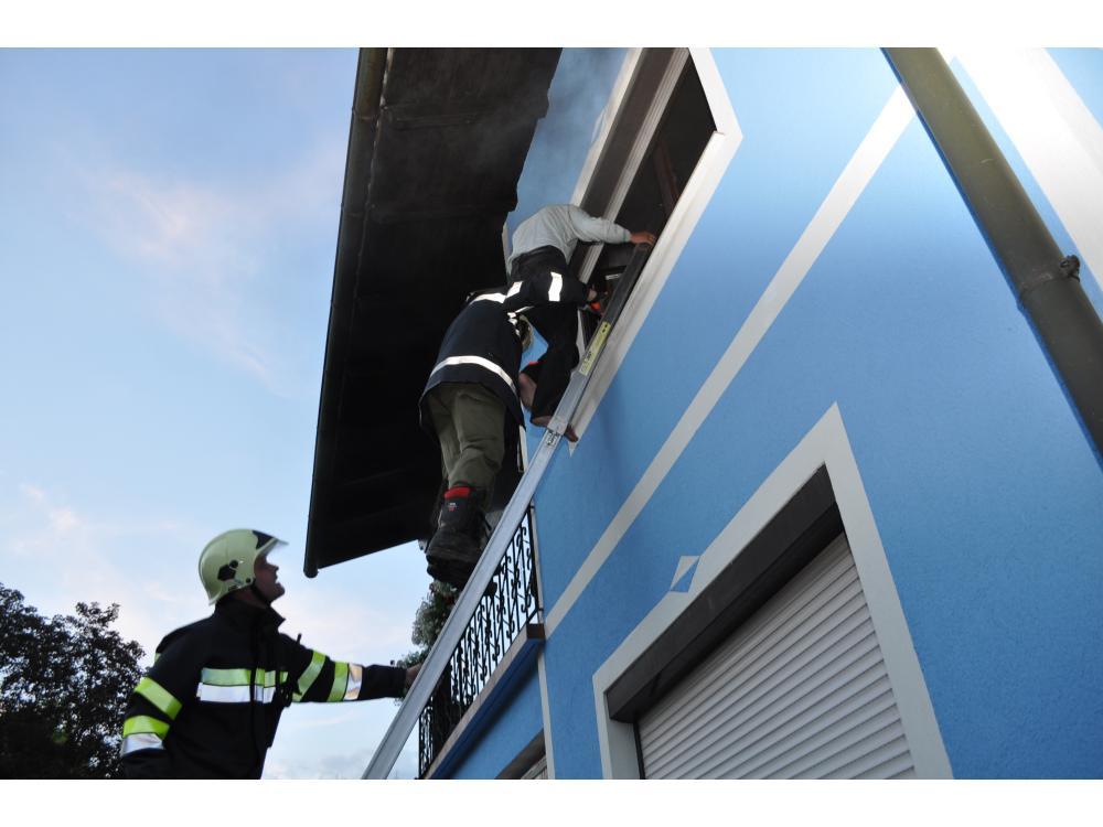 VOITSBERG, am 26.05.2012 Die Feuerwehren Voitsberg und Krems wurden über die LLZ „Florian Steiermark“ zu einem Zimmerbrand mit Menschenrettung alarmiert. Nach Eintreffen stellte der Einsatzleiter fest, dass im 1. Obergeschoß des Wohnhauses eine Person in einem verrauchten Zimmer eingeschlossen ist. Der vom Rauch gezeichnete Mann zeigte sich beim Fenster bei Bewusstsein und wurde über den Leiterweg gerettet. Der Löschangriff erfolgte mittels Hochdruckrohren unter schwerem Atemschutz. Die restlichen Räumlichkeiten im 1. Stock konnten durch den Einsatz von weiterem Brandschaden gerettet werden. Das gesamte Haus wurde durch die Rauchentwicklung stark in Mitleidenschaft gezogen. Zur Belüftung wurde ein Druckbelüfter eingesetzt und mittels Wärmebildkamera wurde nach Glutnestern gesucht und diese gelöscht. Der Verletzte wurde mit Verdacht auf eine Rauchgasvergiftung in das LKH Voitsberg eingeliefert. Die Polizei führte die Brandermittlung durch.
