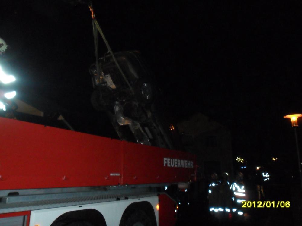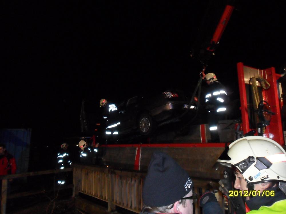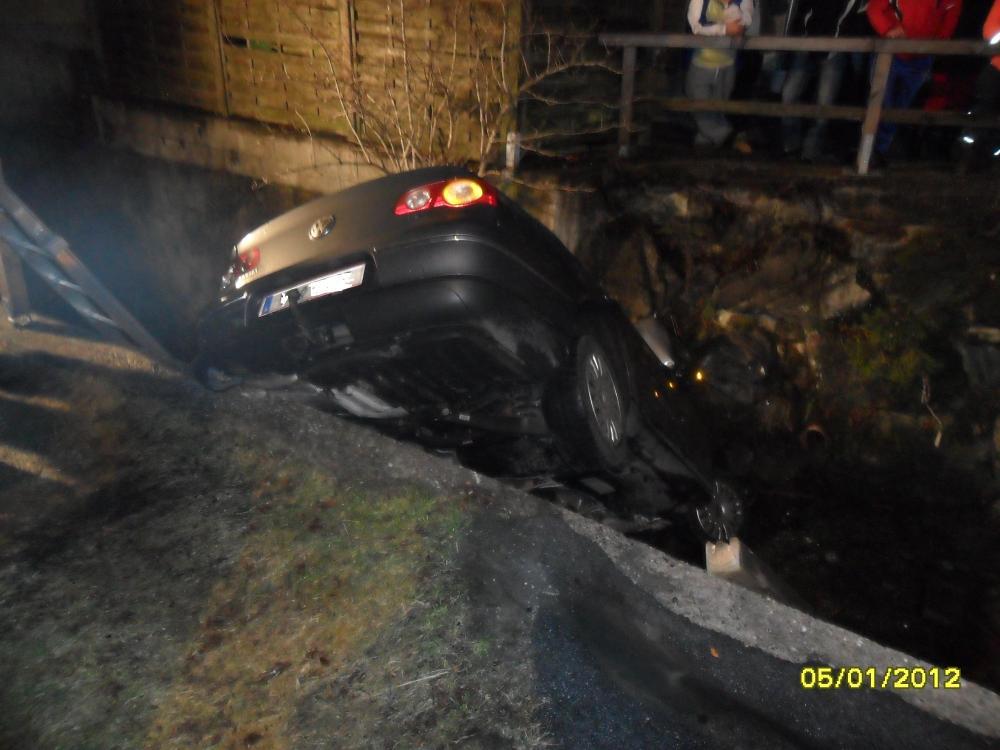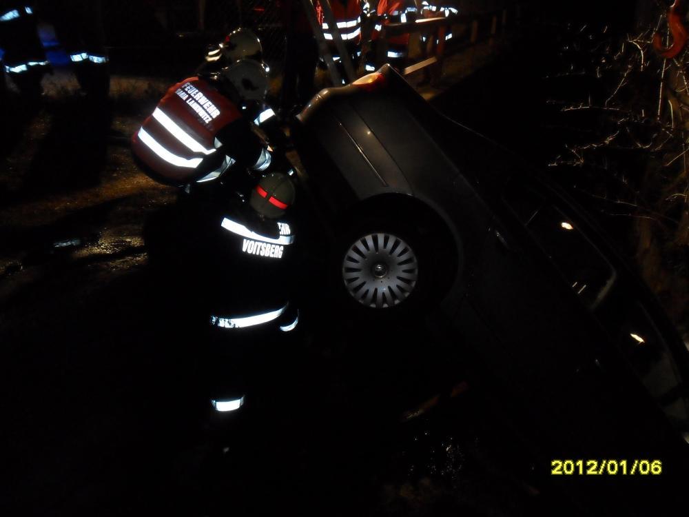 VOITSBERG, am 05.01.2012 Ein PKW kam auf einer Gemeindestrasse in Maria Lankowitz von der Strasse ab und stürzte kopfüber in einen Bach. Die Lenkerin wurde unbestimmten Grades verletzt und vom Roten Kreuz ins LKH Voitsberg gebracht. Die Bergung des Fahrzeuges wurde in Zusammenarbeit der Feuerwehren Ma.Lankowitz und Voitsberg mit dem WLF Voitsberg durchgeführt.