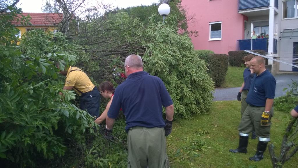 VOITSBERG, am 08.07.2015 In den frühen Nachmittagsstunden ging über der Stadt Voitsberg ein schweres Gewitter mit Starkregen und Sturmböen nieder. Dabei wurden einige Keller und eine Tiefgarage überflutet und Bäume durch den Sturm umgerissen. 15 KameradInnen konnten die 12 gemeldeten Schadensereignisse unter Verwendung von Tauchpumpen und Motorsägen aufarbeiten. Des weiteren wurden Kontrollfahrten durchgeführt.