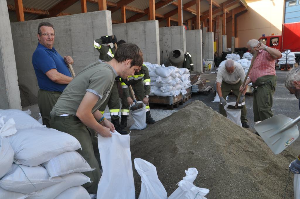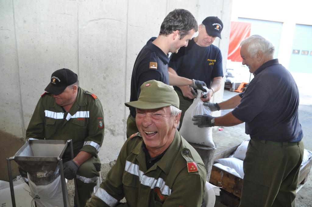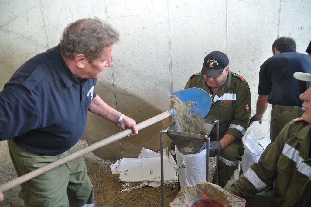 Die Unwetter der letzten Tage haben die Sandsackdepots der Feuerwehren derart dezimiert, dass der zuständige Abschnittsfeuerwehrkommandant des Abschnittes 2 des BFV Voitsberg, ABI Alfred Jauk, vom Bereichskommandanten eingeladen wurde, Sandsäcke vorbereitend aufzufüllen.