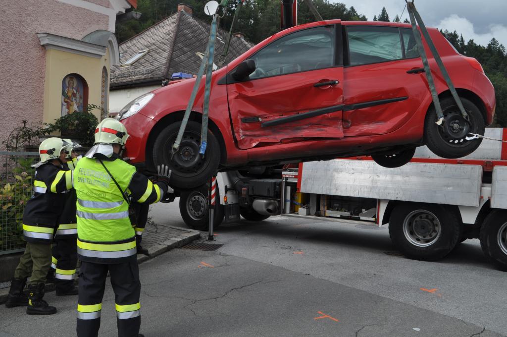 VOITSBERG, am 15.09.2014 Nach Missachtung des Vorranges eines Verkehrsteilnehmers stießen zwei Fahrzeuge an einer Kreuzung zusammen und wurden beschädigt. Die Einsatzstelle wurde abgesichert, ein Fahrzeug wurde händisch vom Unfallbereich entfernt, das zweite wurde mittels WLF-K in eine Werkstätte überstellt. Die Unfallaufnahme erfolgte durch die Polizei Voitsberg.