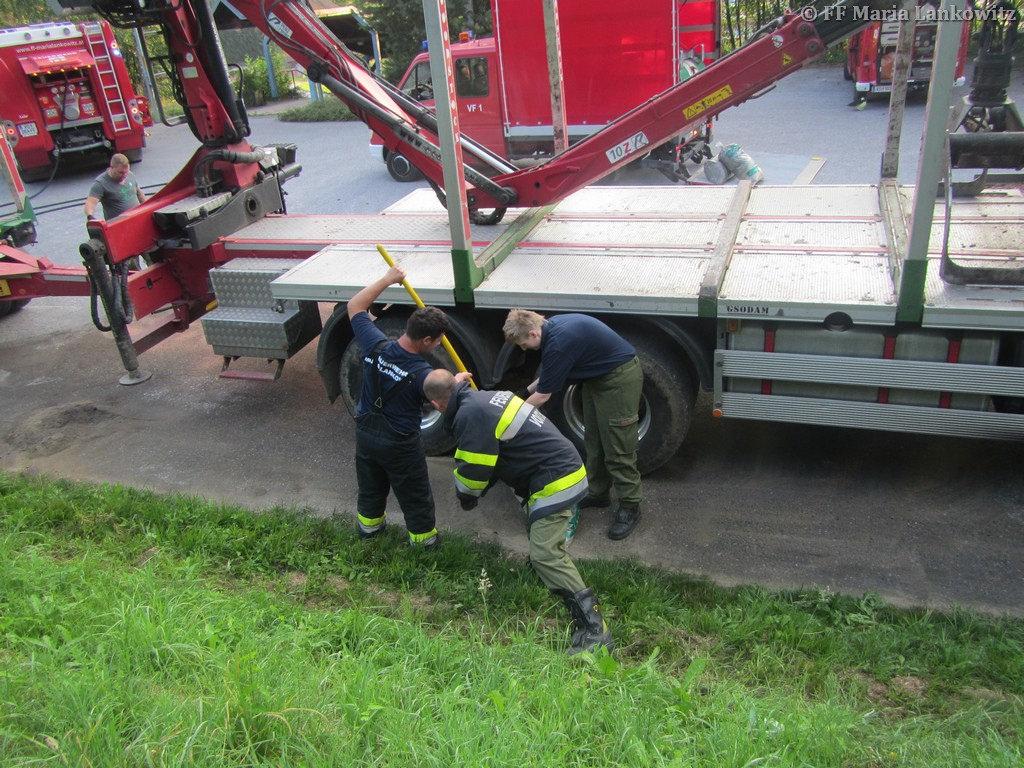 VOITSBERG, am 19.07.2016 Die FF Maria Lankowitz wurde zu einem Schadstoffeinsatz alarmiert. Aus dem Treibstofftank eines abgestellten LKW waren 500 l Diesel ausgelaufen. Das Dieselöl hatte sich auf dem Parkplatz verteilt, war in einen Regenwasserschacht sowie in das angrenzende Erdreich eingedrungen. Einsatzleiter HBI Peter Jandl ließ nach der Erkundung sofort das Ölschadensfahrzeug der FF Voitsberg nachalarmieren. Gemeinsam mit den Voitsberger Florianis wurde das Öl gebunden sowie der Kanalschacht ausgepumpt. Weiters wurde der Chemiealarmdienst Land Steiermark alarmiert. Das kontaminierte Erdreich wurde von einer Fachfirma abgegraben und der Entsorgung zugeführt. (Bericht von BFV - Homepage)