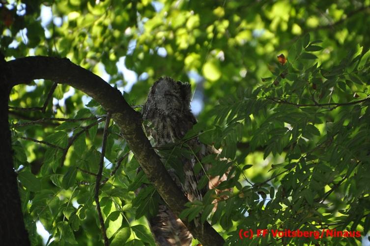 Nach zwei Tagen Aufenthalt in der Tierklinik wurde der genesene Kauz wieder an seinem angestammten Platz beim Schloss Greißenegg ausgesetzt.