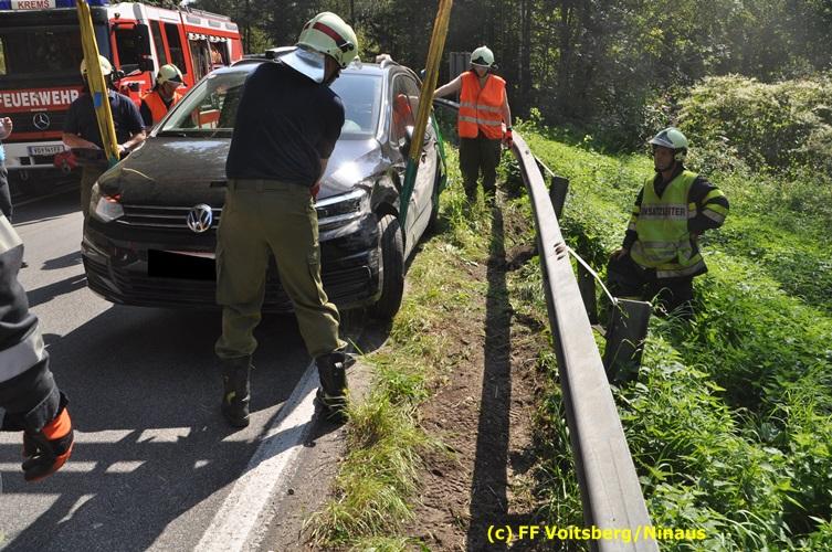 VOITSBERG, am 13.09.2016 Aus ungeklärter Ursache geriet in den Kremser Reihen in Fahrtrichtung Voitsberg ein PKW auf das linke Bankett, touchierte die Leitschiene und schlitterte ca. 50 m dieser entlang. Dabei wurde der PKW auf der linken Seite derart beschädigt, dass das Fahrzeug nur mit Hilfe des WLF-Kran geborgen werden konnte.