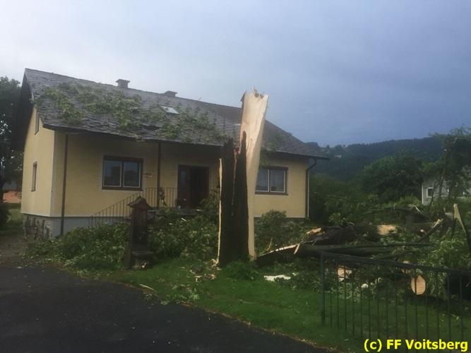 Diverse Unwettereinsätze im Gemeindegebiet Voitsberg (Kowaldstrasse, Gößnitzstrasse, Wolfshuberstrasse, Lobmingbergstrasse), Bärnbach (Ziegelwerkstrasse, Weingartsberg), Köflach (Gradenberg), Afling