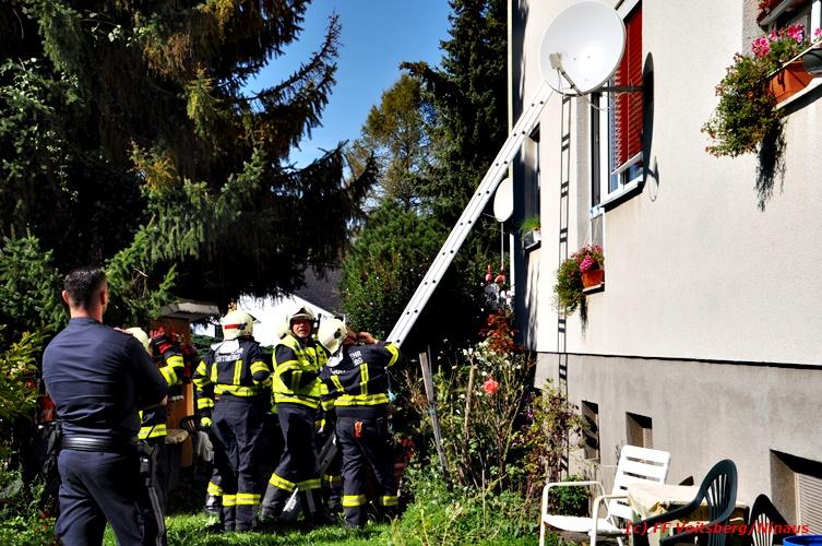VOITSBERG, am 26.09.2018 Die FF Voitsberg wurde am Mittwoch, 26. September 2018 um 12:32 Uhr zu einer Unterstützung des Roten Kreuzes gerufen. Im ersten Stock eines Mehrparteienhauses in der Grillparzerstrasse in Voitsberg konnte eine am Boden liegende Person sich nicht mehr aufrichten. Aufgrund der verschlossenen Wohnung musste ein Kamerad der FF Voitsberg über eine Schiebeleiter durch ein geöffnetes Fenster in die Wohnung einsteigen und die Tür öffnen. Das Rote Kreuz versorgte die ansprechbare Person und überstellte sie ins LKH Voitsberg. Eingesetzte Kräfte: FF Voitsberg mit 7 Kräften (Einsatzleiter: BR Ing. Klaus Gehr) Roten Kreuz mit 2 Sanitätern Polizei Voitsberg mit 2 Beamten Text und Fotos: Walter Ninaus/FF Voitsberg