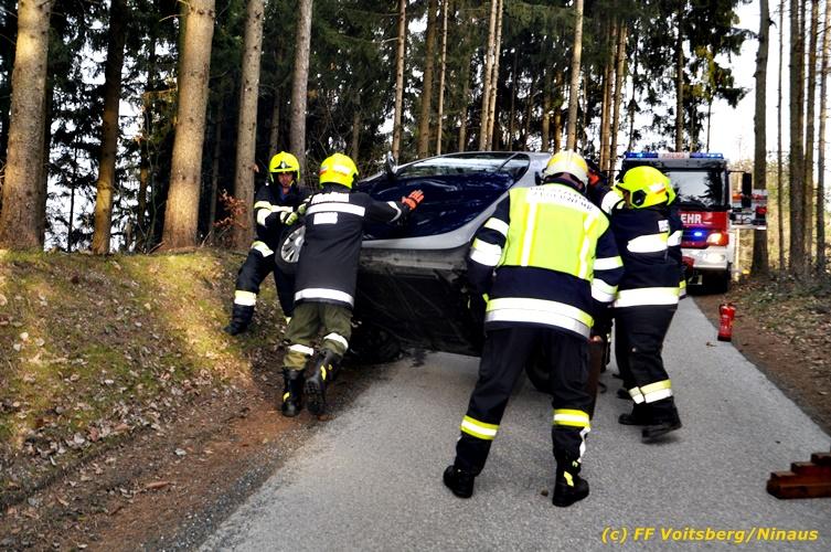 VOITSBERG, am 20.02.2019 Die Feuerwehren Krems und Voitsberg wurden am Mittwoch, 20. Feber 2019 um 15:58 Uhr zu einem Einsatz gerufen. Die Meldung lautete, „Person nach Verkehrsunfall im umgestürzten Fahrzeug eingeklemmt“. Zum Glück konnte die Lenkerin mit eigenen Kräften das Fahrzeug verlassen, sodass keine Menschenrettung erforderlich war. Die unbestimmten Grades verletzte Frau wurde vom Roten Kreuz erstversorgt und ins LKH Voitsberg eingeliefert. Die Feuerwehren Krems und Voitsberg bargen das leicht beschädigte Fahrzeug. Die Polizei führte die Erhebungen durch. Text und Fotos: Walter Ninaus, FF Voitsberg