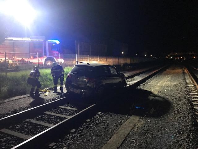 VOITSBERG, am 23.07.2019 Aus ungeklärter Ursache kam am Dienstag, 23. Juli 2019 kurz nach 22 Uhr ein PKW in der Bahnhofstraße in Voitsberg rechts von der Fahrbahn ab, durchstieß einen Metallzaun und landete anschließend auf den Schienen der GKB-Bahnstrecke. Das schwer beschädigte Fahrzeug wurde mit dem WLF-Kran der FF Voitsberg geborgen und an einem gesicherten Ort abgestellt. Der Lenker blieb glücklicherweise nahezu unverletzt und wurde zur Begutachtung ins LKH Voitsberg verbracht. Während der Bergemaßnahmen war der Zugverkehr vorrübergehend eingestellt. Eingesetzte Kräfte unter Einsatzleiter OLM Christian Buchegger waren 7 Mann der FF Voitsberg, Beamte der Polizei Voitsberg, das Rotes Kreuz Voitsberg-Köflach mit Notarzt.