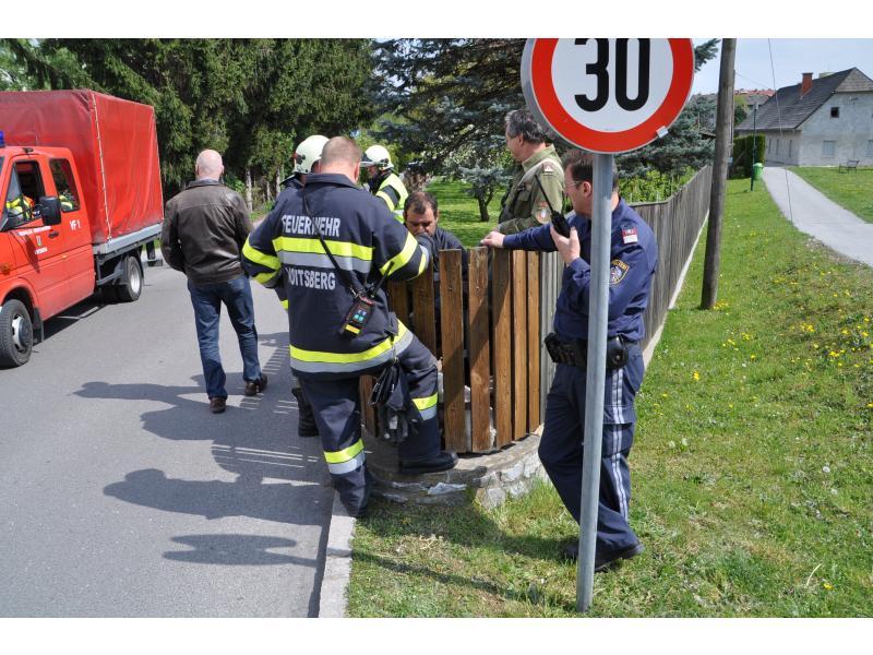 VOITSBERG, am 19.04.2014 Ein Hund fiel aus ungeklärter Ursache wahrscheinlich in den Abendstunden des Karfreitages im Bereich eines Fußweges zum Schlosspark in Voitsberg in den Schlossbach und konnte sich nicht mehr befreien. Fußgänger bemerkten erst nach Mittag des Ostersamstages das herumirrende und auf Hilfe wartende Tier und verständigten über Notruf 122 die FF Voitsberg. Nach Erkundung des Einsatzleiters OBI Münzer wurde der unverletzte Hund im Bach eingefangen, geborgen und in das Tierheim Franziskus nach Rosental überstellt.