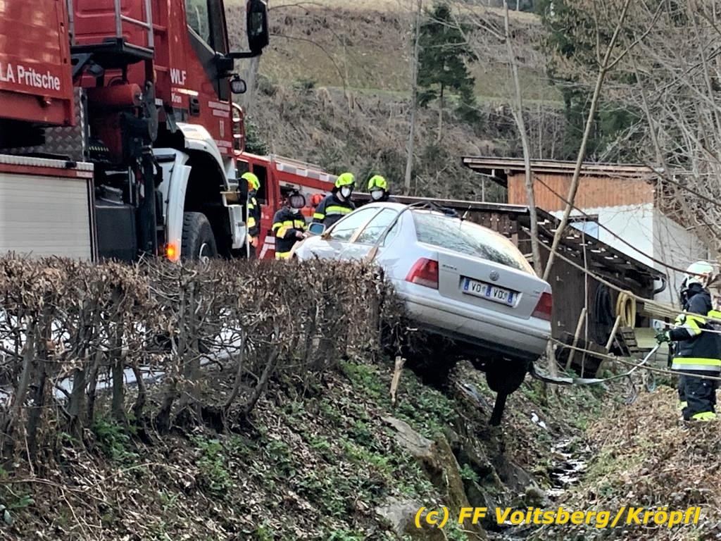 VOITSBERG, am 26.03.2021 Die FF Voitsberg wurde über Anforderung der einsatzleitenden FF Afling zu einer Fahrzeugbergung alarmiert. Ein Pkw kam von der Straße ab und drohte abzustürzen.