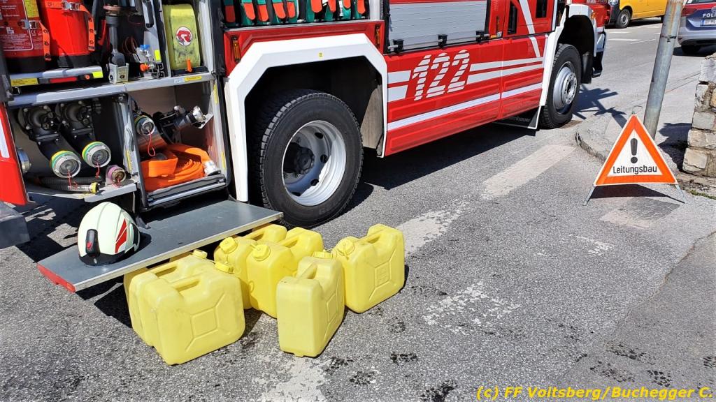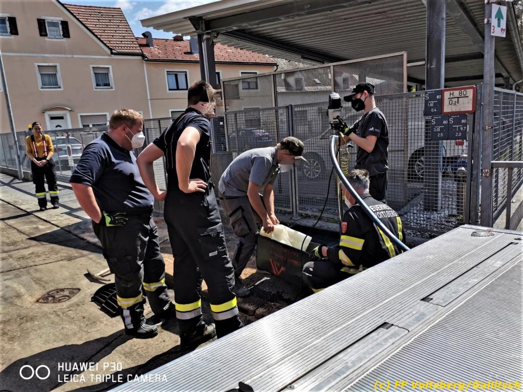 VOITSBERG, am 21.04.2021 Bei Verladearbeiten eines Trafos gelangten nach einem technischen Gebrechen in den Vormittagsstunden des 21. April 2021 in der Burggasse in Voitsberg ca. 250 l Hydrauliköl über einen Abfluss in den Tregistbach.