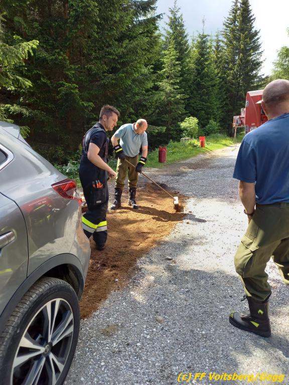 VOITSBERG, am 17.06.2022 Über Anforderung der einsatzleitenden Feuerwehr Graden wurde die FF Voitsberg als zuständiger Ölalarmstützpunkt zu einem Einsatz in das Gemeindegebiet Maria Lankowitz zum Sattelhaus alarmiert.