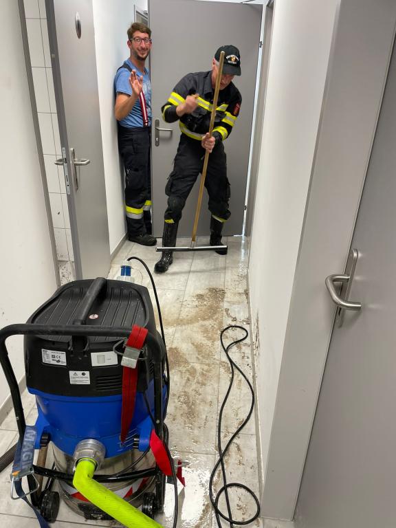 Mit insgesamt fünf Nasssaugern konnte das Wasser nach ca. 2 Stunden abgepumpt werden. Der Schaden ist enorm.