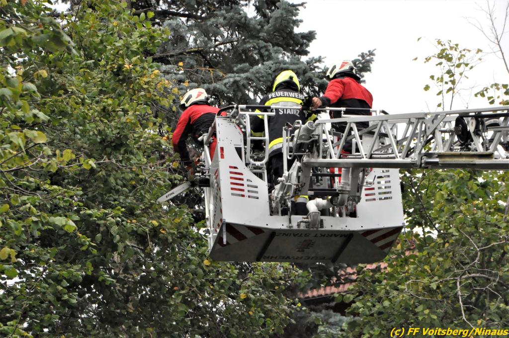 Für ein gelöstes Blech auf der Josefskirche und einem umsturzgefährdeten Baum Am Dechantriegel wurde die Drehleiter Stainz über die LLZ Steiermark angefordert, da die DL Köflach bei vielen Einsätzen im Bezirk ausgelastet war.