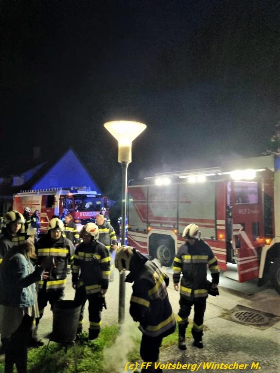 Glutnester in Kastanienofen im Freien haben noch geraucht - Löschen des Kleinbrandes - kein Schaden