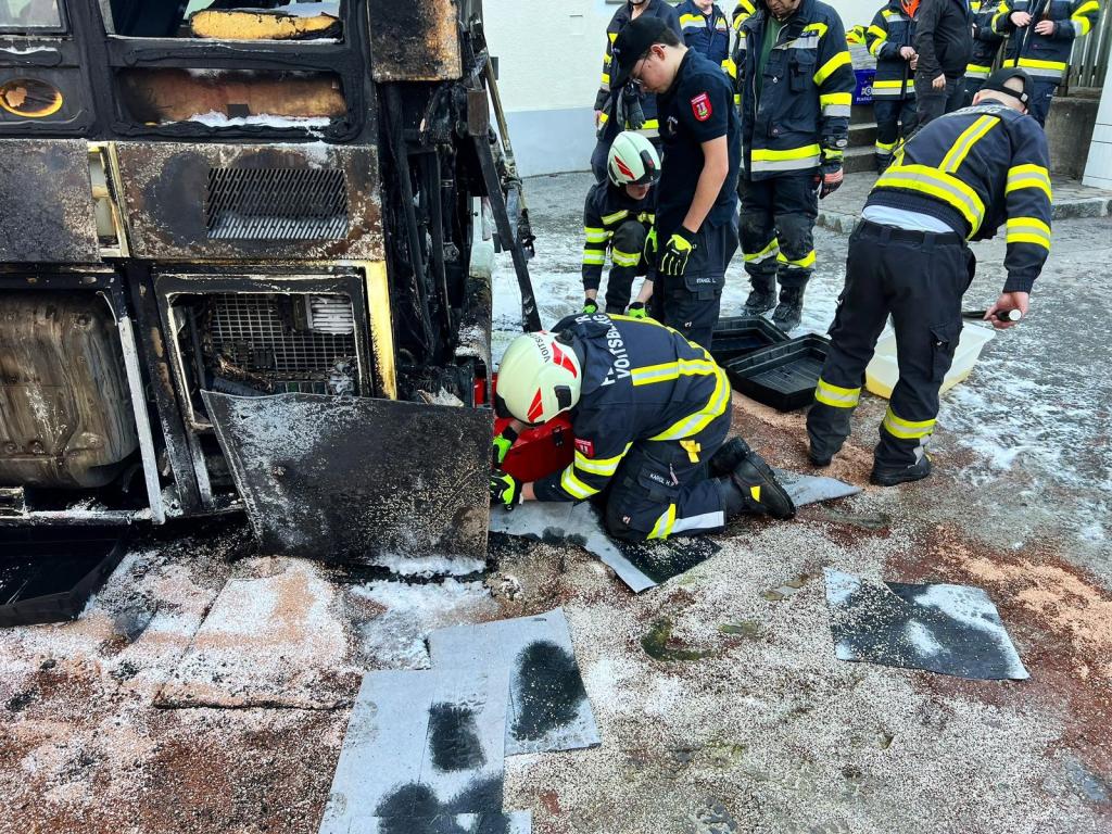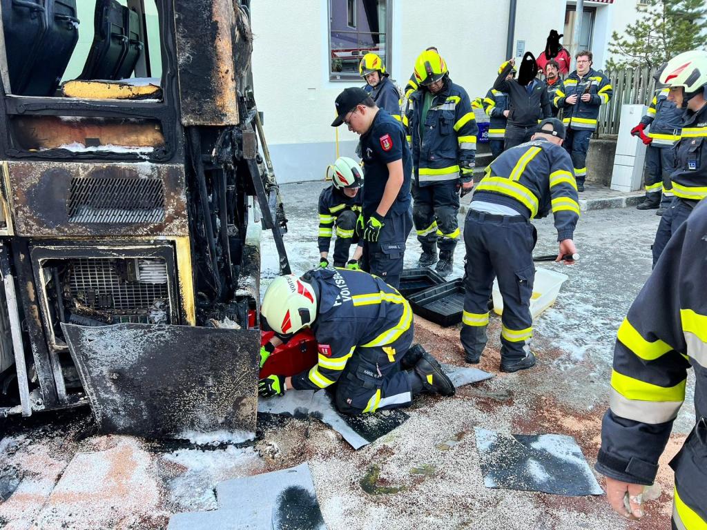 VOITSBERG, am 05.02.2024 Am 05.02.2024 geriet in Kainach kurz nach Mittag ein Linienbus aus ungeklärter Ursache in Brand. Das Feuer konnte von den Feuerwehren Afling und Kainach rasch gelöscht werden. Aufgrund der ausgelaufenen Betriebsmittel wurde um 14:05 Uhr auch die FF Voitsberg mit dem Ölschadensfahrzeug alarmiert.