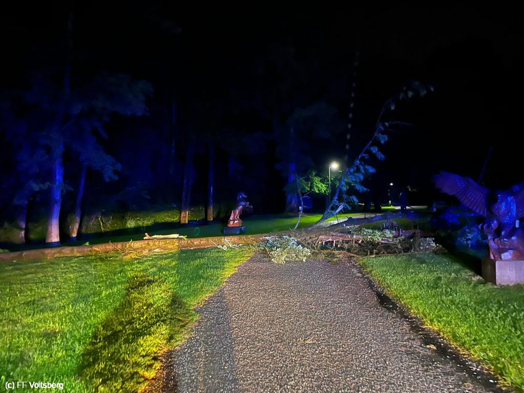 VOITSBERG, am 22.06.2024 Nach einem Gewitter mit Blitzen und Sturm stürzten zwei Bäume im Naherholungsgebiet Schlosspark um. Sicherungsarbeiten durchgeführt und den Bau- und Wirtschaftshof verständigt.