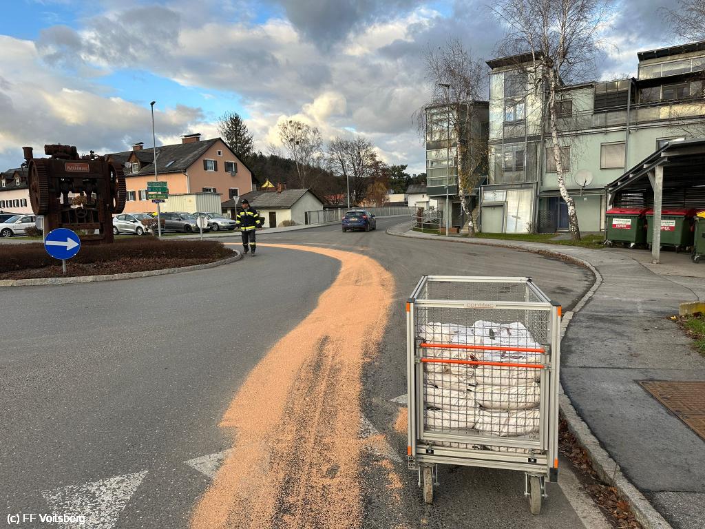 Ca. 150m lange Ölspur mit Bindemittel gebunden, mit feuerwehreigenen Kehrmaschine aufgesaugt und fachgerecht entsorgt.