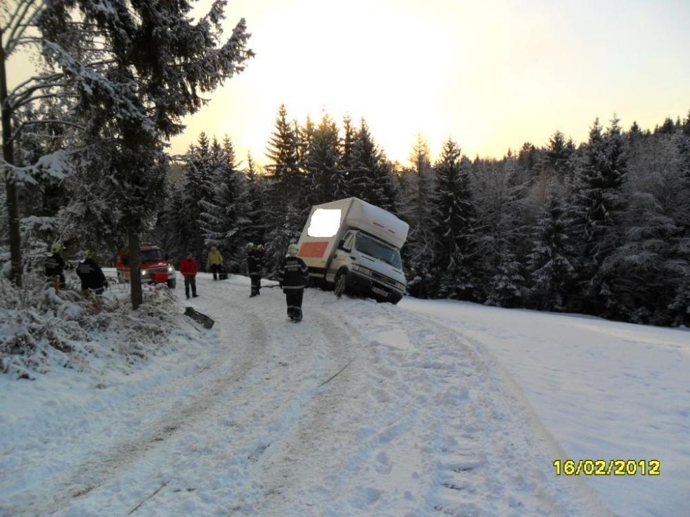 VOITSBERG, am 16.02.2012 Auf einer Schneefahrbahn kam ein Klein-LKW von der Straße ab, rutschte über eine Böschung und drohte umzustürzen. Die FF Voitsberg sicherte das Fahrzeug und barg es sodann mit den Seilwinden des RLFA-Tunnel und des KRFB. Zusätzlich wurde das Fahrzeug bei einem Baum gesichert. Nach der Bergung konnte der Klein-LKW seine Fahrt auf eigener Achse fortsetzen.