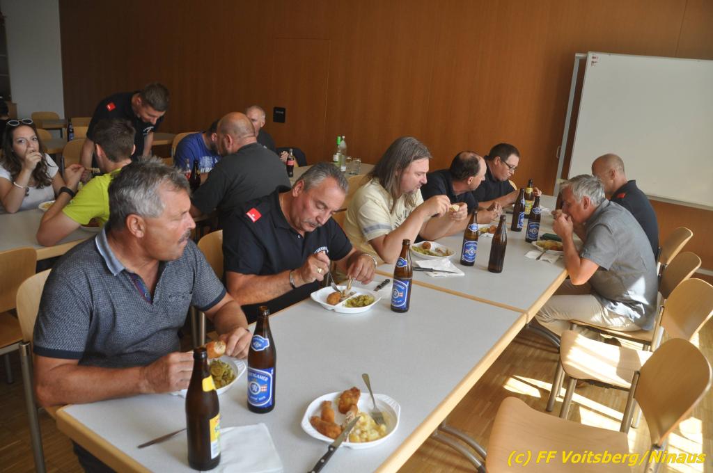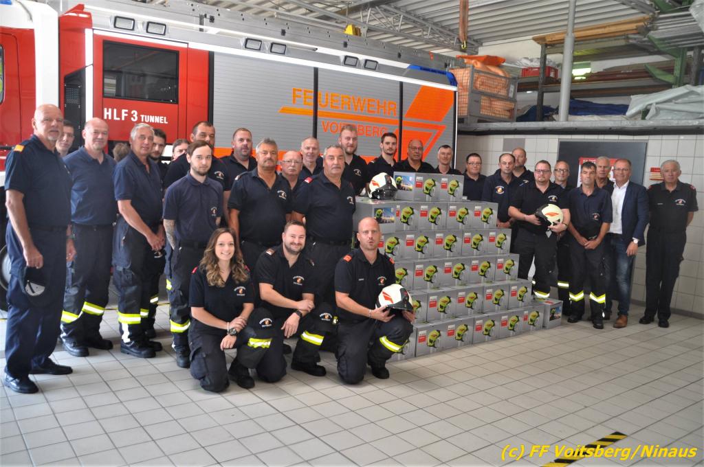 VOITSBERG, am 17.08.2019 Die Kameradinnen und Kameraden der FF Voitsberg trafen sich am Samstag, 17. August 2019 zu zwei erfreulichen Anlässen im Rüsthaus. Zum ersten stattete der neue Bürgermeister Mag. (FH) Bernd Osprian einen ersten offiziellen Antrittsbesuch ab und in weiterer Folge wurde an alle KameradInnen ein neuer Einsatzhelm übergeben. Wehrkommandant BR Ing. Klaus Gehr begrüßte Bgm. Osprian und brachte einen Rückblick über die Ausstattung der Mitglieder der letzten Jahre. Er betonte den hohen finanziellen Aufwand für diese Beschaffungen. So wurden in den letzten 6 Jahren für die Einsatzanzüge 1+2, Einsatzhelme, Handschuhe, Dienstbekleidung D 3 (blau) insgesamt 145.000,00 Euro investiert. Dieser hohe Betrag wurde seitens der Stadtgemeinde Voitsberg, durch Erlöse aus den Festveranstaltungen, Spenden, Beiträgen aus verrechenbaren Einsätzen, Förderungen des LFV und aus dem Budget der FF Voitsberg aufgebracht, wofür allen Dank auszusprechen gilt. Bürgermeister Osprian stellte sich der angetretenen Mannschaft vor. Er sicherte zu, dass er sich, wie schon bisher durch seinen Vorgänger Ernst Meixner, für die Belange der Feuerwehr einsetzen und die finanziellen Mittel aus dem Gemeindebudget bereitstellen wird. Er dankte für die erbrachten Leistungen und lud abschließend zu einem gemeinsamen Mittagessen.