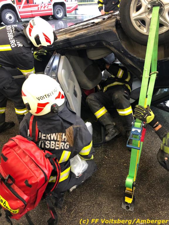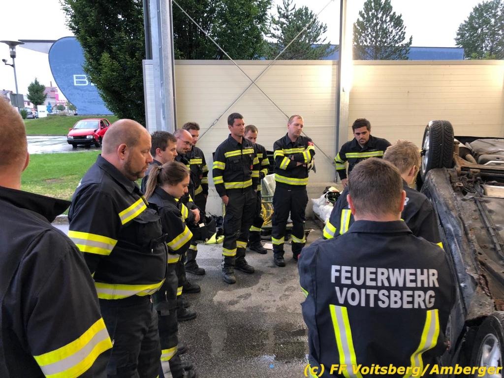 VOITSBERG, am 02.09.2019 Am Montag, 2. September 2019 organisierte der SAN-Beauftragte OLM.d.S. Christoph Amberger gemeinsam mit den Kameraden OFM Elisabeth Jauk und OFM Markus Roßmann eine SAN-Übung für alle Übungsteilnehmer. Thema dieser Übung war der Innere Retter / Aufgaben Innerer Retter. Zuerst wurde die Theorie besprochen, anschließend in die in Praxis umgesetzt ( Rettung verunfallter Personen aus verunfalltem PKW).