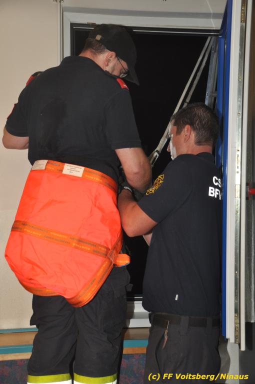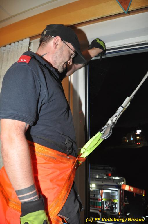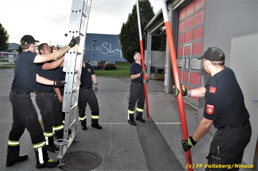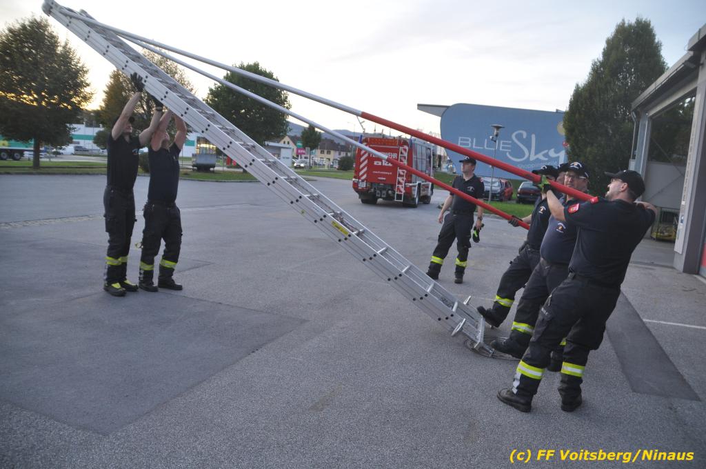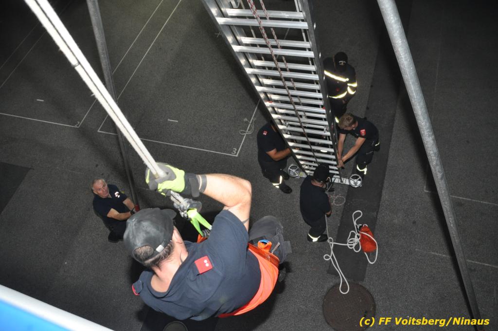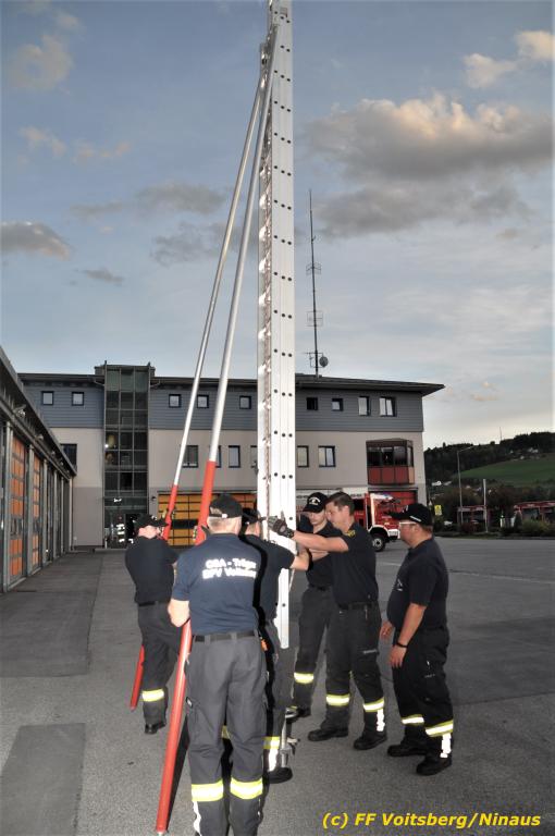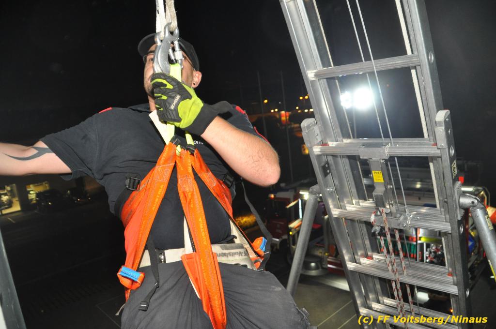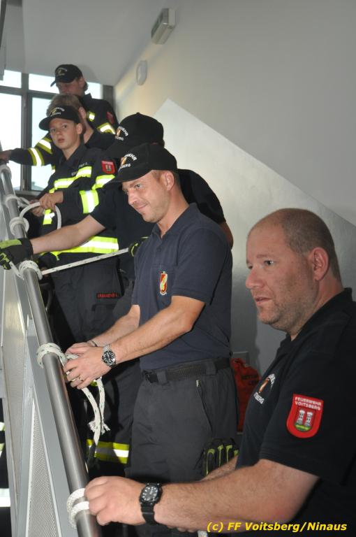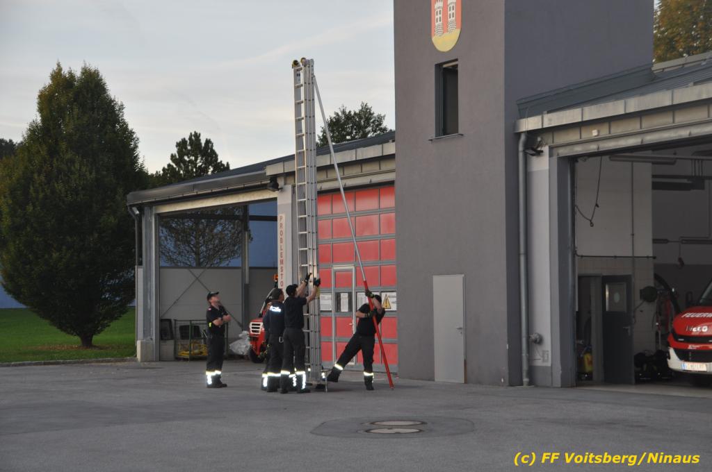 VOITSBERG, am 30.09.2019 Die Rettung von Personen mittels Rettungsgeschirr aus einem Obergeschoss stand am Programm der technischen Übung.