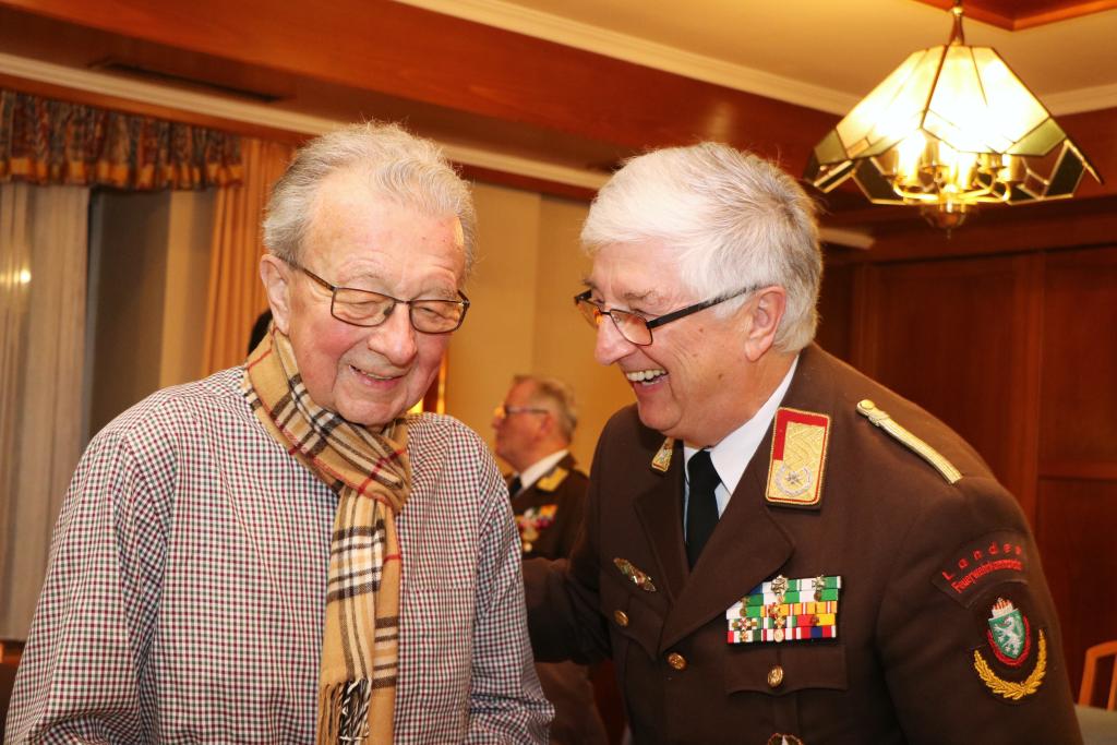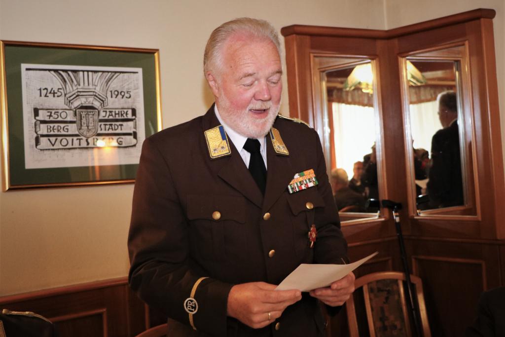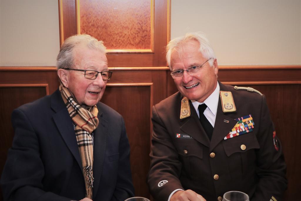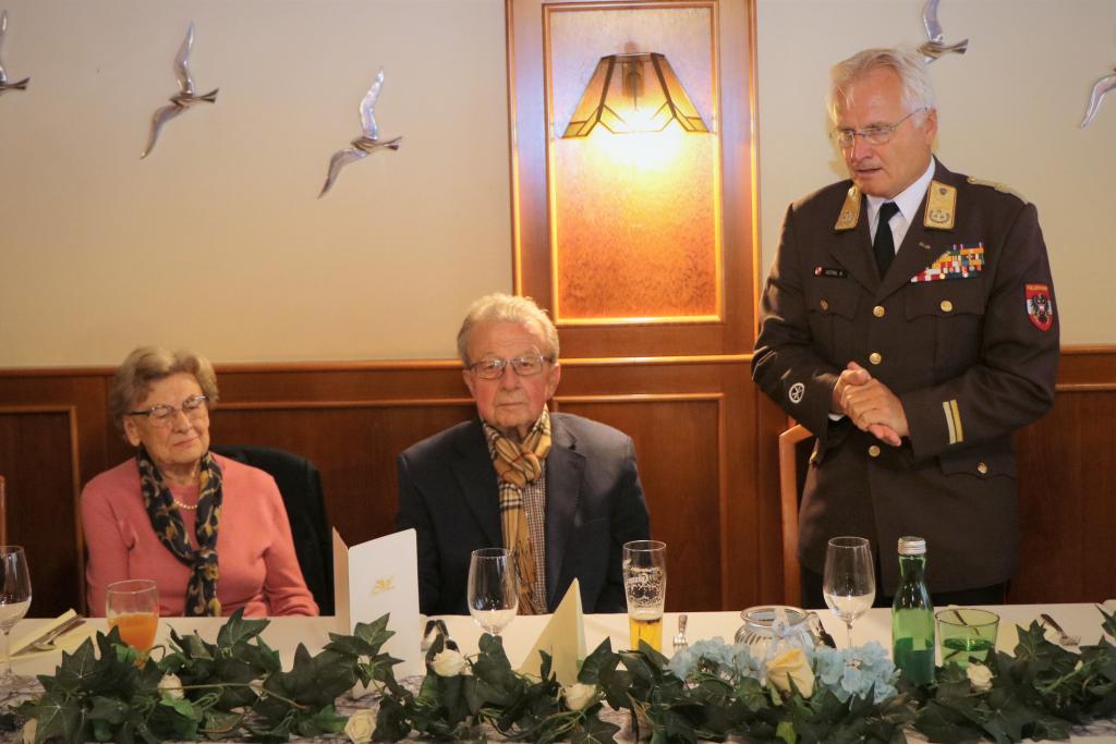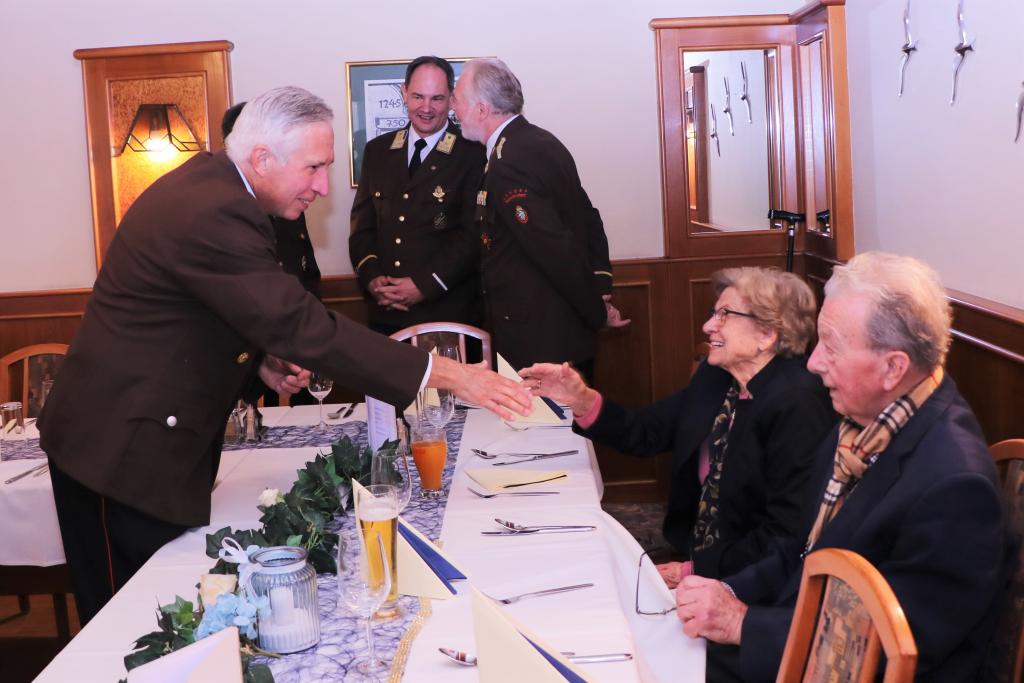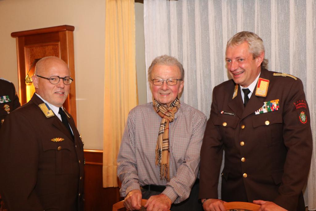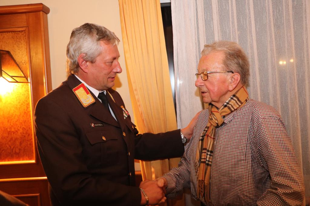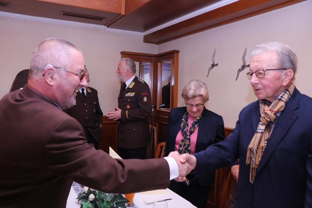 Die steirische Feuerwehrlegende Karl Strablegg feierte seiner 90er Am 4. Oktober 2019 feierte der ehemalige Landesfeuerwehrkommandant und Vizepräsident des ÖBFV, ELBD Karl Strablegg, die Vollendung seines 90. Lebensjahres. Aus diesem Anlass luden der Bereichsfeuerwehrverband Voitsberg sowie die Freiwillige Feuerwehr der Stadt Voitsberg am Montag, dem 7. Oktober 2019, zu einer Geburtstagsfeier in den Gasthof Merta ein. OBR Christian Leitgeb konnte neben dem Jubilar und seiner Gattin Franziska auch FPräs. Albert Kern, LBD Reinhard Leichtfried, LBDS Erwin Grangl, ELBD Georg Ferstl, ELBD Bernhard Krugfahrt, ELBDS Gustav Scherz, Ehren-Bereichsfeuerwehrkommandant Bgm. Engelbert Huber, BR Ing. Klaus Gehr, OBR d. LFV Michael Jost sowie zahlreiche Funktionäre und Ehrendienstgrade des Bereichsfeuerwehrausschusses und der Stadtfeuerwehr Voitsberg begrüßen. BR d.V. Rudolf Lobnig fiel die ehrende Aufgabe als Laudator zu. Er zeichnete die imposante Feuerwehrlaufbahn des Jubilars, als Kommandant der FF Voitsberg, als Bezirks- und schließlich als Landesfeuerwehrkommandant. Eine Funktion, die Strablegg 20 Jahre, von 1976 bis 1996, erfolgreich innehatte und somit der längst dienende Landesfeuerwehrkommandant der Steiermark war. „Als Karl Strablegg im Jahre 1976 mit 45 Jahren zum Landesfeuerwehrkommandanten der Steiermark gewählt wurde, war er für die meisten Feuerwehrmitglieder ein unbeschriebenes Blatt. Vor allem war er für dieses hohe Amt unfassbar jung, denn der Altersdurchschnitt der Führungskräfte lag damals weit über dem 60. Lebensjahr“, führte Lobnig aus. „Doch der junge Landesfeuerwehrkommandant war schon vor seiner Wahl gut vernetzt. Im Gemeinderat der Stadt Voitsberg hatte er Erfahrungen in der Kommunalpolitik gesammelt und seine Freundschaft mit der Familie Koren öffnete ihm viele Türen in der Landespolitik. Als Kommandant der Stadtfeuerwehr Voitsberg und als Bezirksfeuerwehrkommandant verfügte er selbstverständlich über die nötigen Fachkenntnisse, was schon 1973 zu seiner Ernennung zum Landesfeuerwehrrat führte. Für den frisch gewählten Landesfeuerwehrkommandanten tat sich nun ein weites Betätigungsfeld auf. Vor allem war die Führungsriege – wie schon eingangs erwähnt – völlig überaltert. So initiierte Strablegg ein neues Landesfeuerwehrgesetz, das die Altersgrenze für den Aktivdienst mit 65 Jahren festsetzte und die Kommandantenprüfung für Offiziersdienstgrade zwingend vorschrieb. Damit vollzog sich fast schlagartig der notwendige Generationenwechsel und auch die Lehrgangsbesuche an der Feuerwehr- und Zivilschutzschule Steiermark, die damals zu den innovativsten Feuerwehrausbildungszentren Europas zählte, erreichten Spitzenwerte“ erläuterte Lobnig in seinen Ausführungen zum Anlass. So sollte der Ausbildungswelle nun auch eine wahre Ausrüstungsoffensive folgen. „Die Einführung der elektronischen Datenverarbeitung – bereits 1980 wurde der erste Großrechner im LFV installiert und die Verwaltung Zug um Zug modernisiert – war der erste Schritt. Ihm folgte der Aufbau des Atemschutzes und der Stützpunktfeuerwehren; der totale Ausbau der Funksirenensteuerung mit der Einrichtung der Bezirksalarmzentralen; das Tanklöschfahrzeug-, Drehleiter- und Rüstfahrzeugprogramm und die landesweite Förderung der persönlichen Schutzausrüstung. Doch die persönliche Schutzausrüstung für die Feuerwehrmitglieder war noch nicht genug: Mit der Einführung der „Feuerwehr-Kollektiv-Unfallversicherung“ wurde ein weiterer, wesentlicher Schritt zur Absicherung unserer Mitglieder unter Karl Strablegg gesetzt“, so Lobnig weiter in seiner Laudatio, der dabei auch auf die Pionierarbeit Strableggs im Bereich der Öffentlichkeitsarbeit einging. „Der Jubilar errichtete 1980 ein Pressereferat und gestaltete das „Mitteilungsblatt des steirischen Landesfeuerwehrverbandes“ in eine anerkannte Fachzeitschrift um. Das unter ihm verlegte ‚Große Steirische Feuerwehrbuch‘ gilt noch heute als Standardwerk für die Feuerwehrhistoriker und auch die Gründung des Feuerwehrmuseums Groß St. Florian ging auf seine gemeinsame Initiative mit Landtagspräsident a.D. Reinhold Purr, der im Februar 2018 im Alter von 81 Jahren verstorben ist, zurück“ führte der Laudator aus. „Was zeichnet eine gute Führungskraft aus?“ warf Laudator Lobnig in Folge fragend in den Raum, um gleich darauf die Antwort zu liefern. „Handschlagqualität – soziale Kompetenz – Team- und Kommunikationsfähigkeit – Durchsetzungskraft mit Augenmaß – Disziplin und eine gute Portion Weitblick. Diesen hat Karl Strablegg bewiesen, als er schon fast am Ende seiner 20-jährigen Funktionsperiode den Bau des Landesfeuerwehrkommandos in Lebring initiierte. Denn mit dem Umzug des Landesverbandes von Graz nach Lebring hat der Jubilar den Grundstein für die heutige Selbstverwaltung gelegt. Die Führungsqualitäten Karl Strableggs wurden auch im Bundesfeuerwehrverband erkannt, wo er zwei Perioden lang als Vizepräsident in zahlreichen nationalen und internationalen Arbeitskreisen die Anliegen der freiwilligen Feuerwehren vertrat. Ebenso griff die Wirtschaftskammer Steiermark auf seine Erfahrungen zurück, war er doch viele Jahre erfolgreich als Landesinnungsmeister tätig. Sein hohes Engagement wurde vor allem durch die Akzeptanz seiner Familie ermöglicht und ich darf mit besonderer Hochachtung seine Gattin erwähnen, die ihn in den vielen Stunden seiner Abwesenheit im Unternehmen ersetzen musste. Ihr gebührt ein besonderer Applaus!“ schloss Lobnig seine Ausführungen zum 90. Geburtstag von ELBD Karl Strablegg – mit der abschließenden Feststellung, dass „die heutige Positionierung der steirischen Feuerwehren ohne das Wirken des Jubilars mit seiner unglaubliche Ausbildungs- und Ausrüstungsoffensive undenkbar wäre und sohin dessen Handschrift auch noch in etlichen Jahrzehnten im steirischen Feuerwehrwesen erkennbar sein werde“. FPräs. Albert Kern und Landesfeuerwehrkommandant LBD Reinh