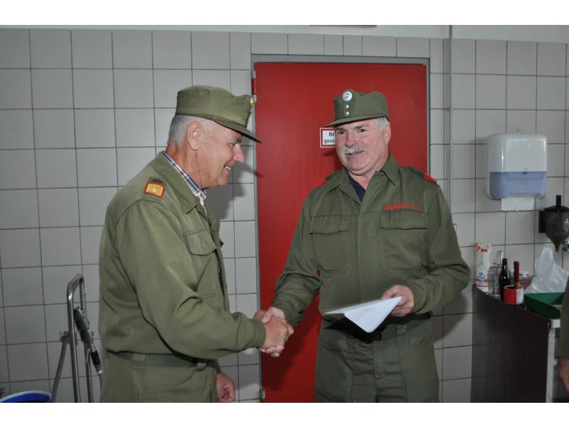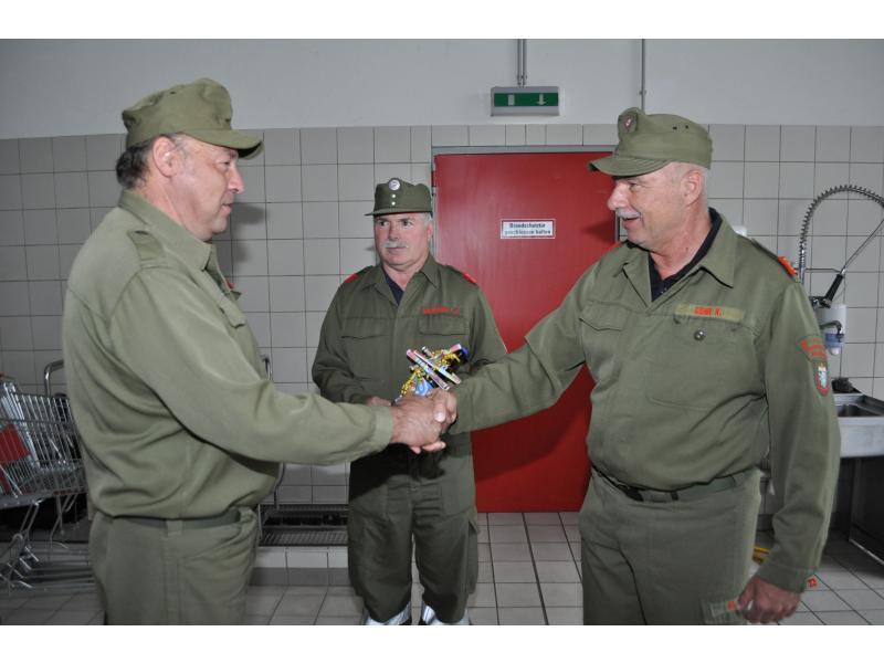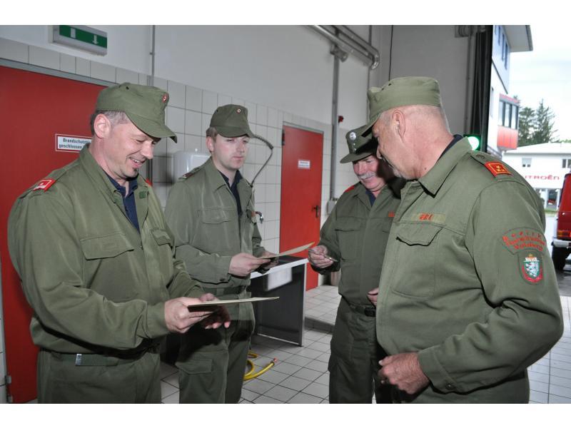 VOITSBERG, am 10.06.2013 Vor der Übung wurden im Rüsthaus die Kameraden EABI Rudolf Gargitter für seine hohe Auszeichnung der Republik Österreich (siehe 03.06.) und BM d. F. Rudolf Deutschmann zur Vollendung seines 60. Geburtstages vom Wehrkommandanten HBI Ing. Klaus Gehr und von HBM Karlheinz Buchegger gratuliert. Weiters wurden die Kameraden LM Harald Sury für seine 30jährige Mitgliedschaft mit der Verdienstmedaille in Gold der FF Voitsberg und LM d. F. Christian Buchegger für seine 10jährige Mitgliedschaft mit der Verdienstmedaille in Bronze der FF Voitsberg ausgezeichnet.