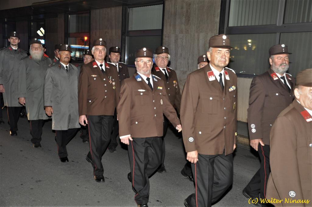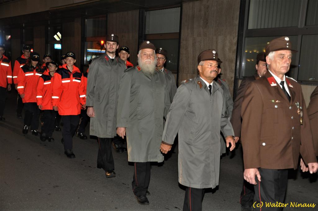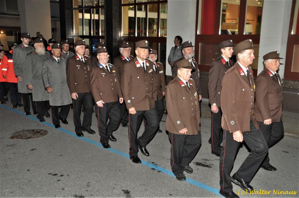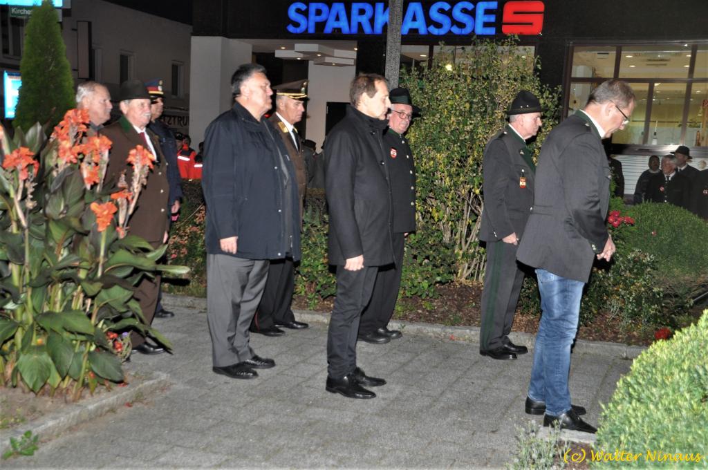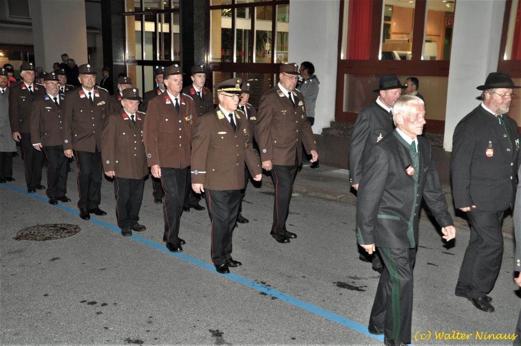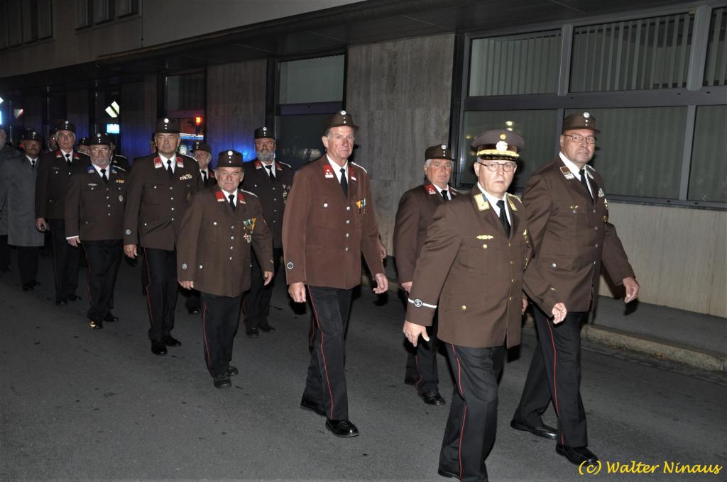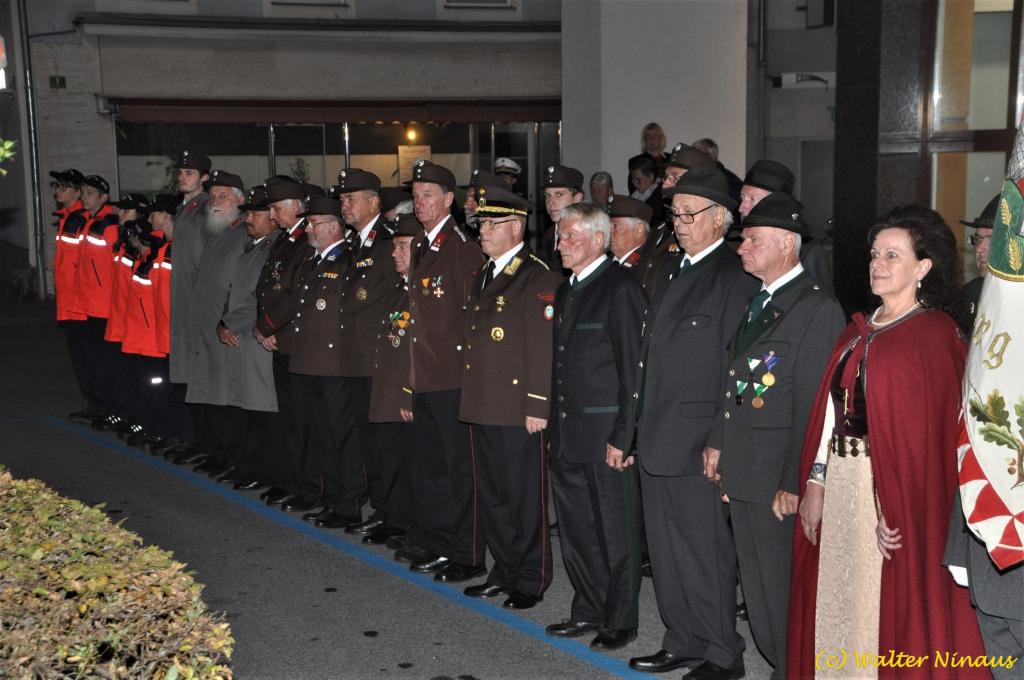 VOITSBERG, am 25.10.2019 Der Österr. Kameradschaftsbund Ortsverband Voitsberg organisierte am Vorabend des Nationalfeiertages traditionell die Totengedenkfeier zum Gedenken der gefallenen und verstorbenen Kameraden. Nach einer Gedenkmesse, zelebriert vom Seelsorger Mag. Josef Paier in der St. Josefskirche, marschierte der Zug, bestehend aus Abordnungen des Kameradschaftsbundes Voitsberg, der FF Voitsberg, der FF Krems, der Feuerwehrjugend Voitsberg, der Alt-Kainacher Ritterschaft und der Bergkapelle Hödlgrube-Zangtal zum Kriegerdenkmal in der Bahnhofstrasse. Der geschäftsführende Obmann Günter Salmutter konnte nach der Weihe der neuen Fahnenmasten durch den Geistlichen Mag. Paier zahlreiche Ehrengäste begrüßen: Bürgermeister Mag. (FH) Bernd Osprian, Vizebürgermeister Kurt Christof, Finanzstadtrat Franz Sachernegg, Gemeinderat Johann Rauchegger, Vizepräsident und Bezirksobmann Ing. Johann Harrer, EABI Rudolf Gargitter von der Feuerwehr, den Kommandanten der Polizeiinspektion Voitsberg Robert Zapfl, die Bergkapelle Hödlgrube-Zangtal sowie Personen aus der Bevölkerung, welche die Verbundenheit zum Kameradschaftsbund Voitsberg zeigen. In Ansprachen von Bgm. Bernd Osprian, BO Johann Harrer und dem Obmann Josef Ablasser wurden die Leistungen der gefallen und verstorbenen Kameraden beider Weltkriege gewürdigt und Kränze niedergelegt. Abschließend fand eine Defilierung des Gedenkzuges vor den angetretenen Ehrengästen statt. Bei einem gemeinsamen Abendessen unter Marschklängen der Bergkapelle Hödlgrube-Zangtal im Gasthaus Merta fand dieser Tag des Gedenkens seinen kameradschaftlichen Ausklang.