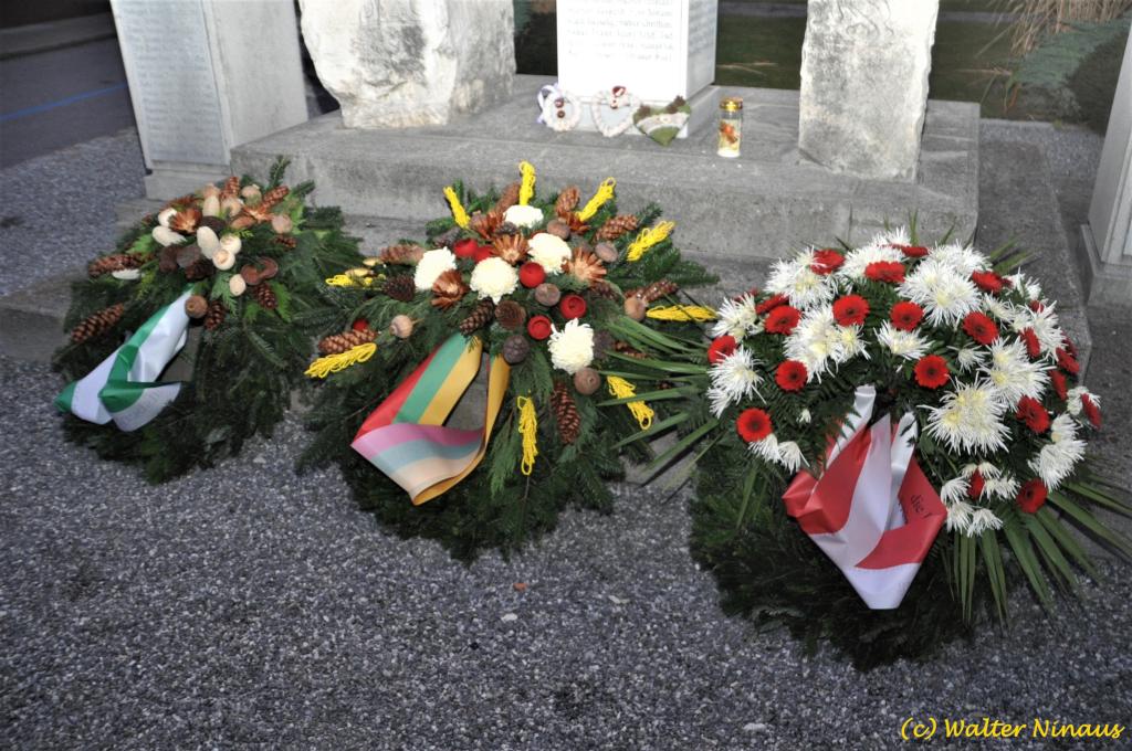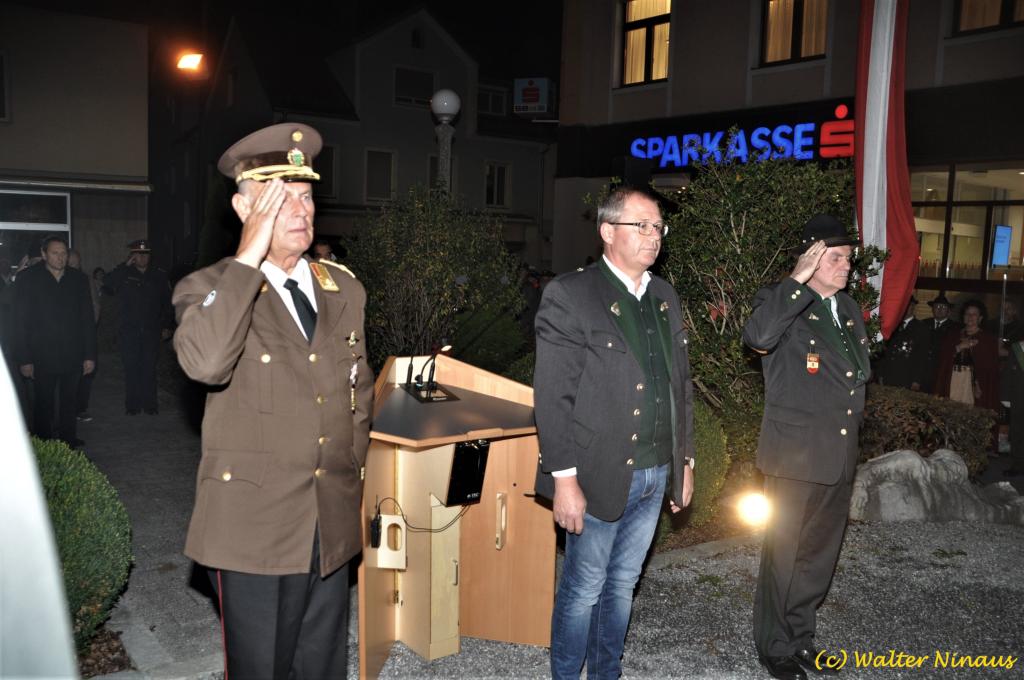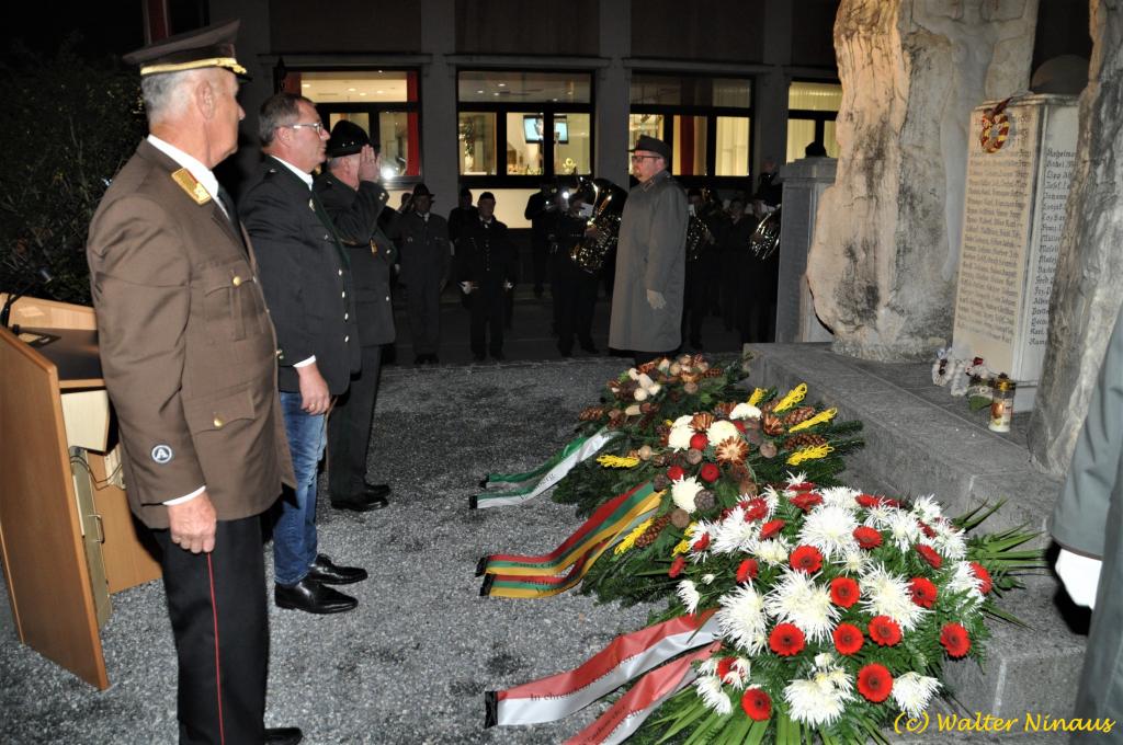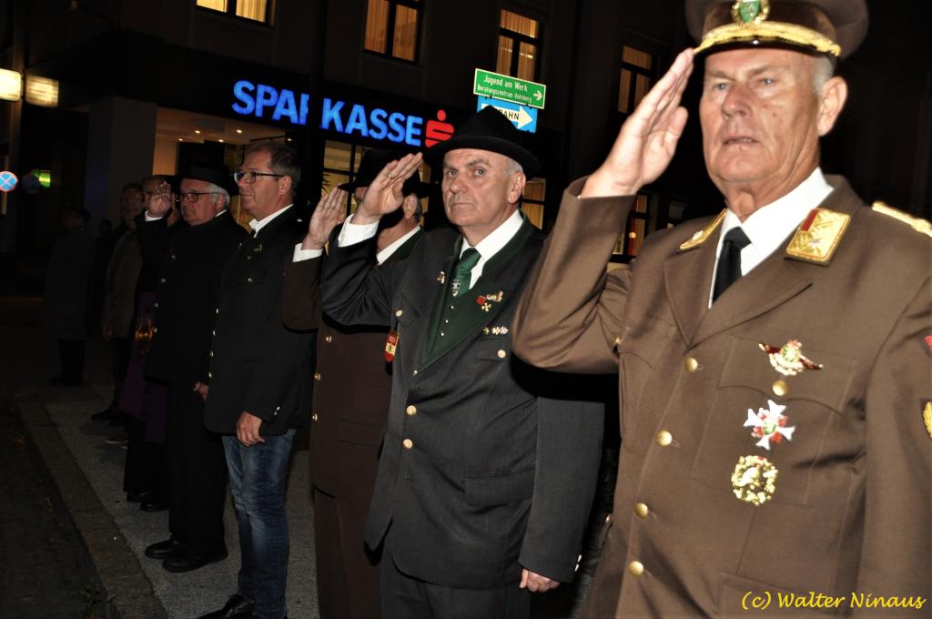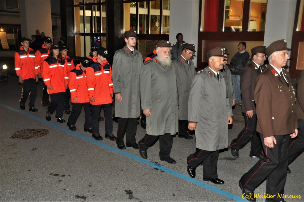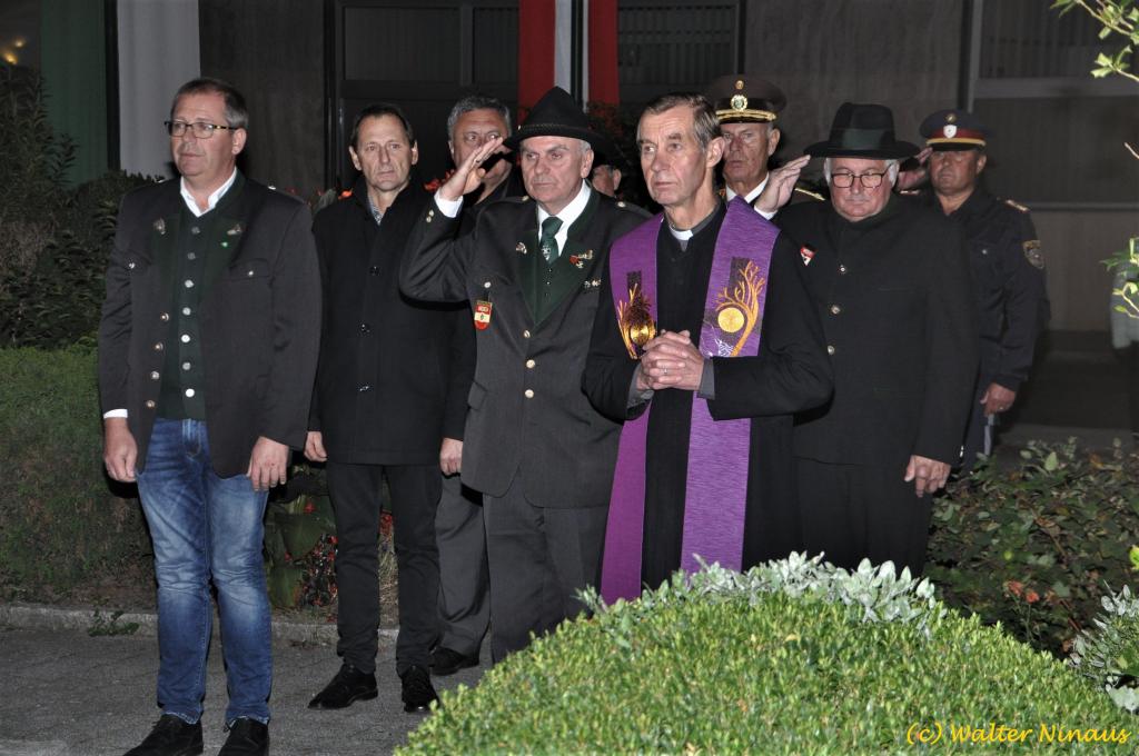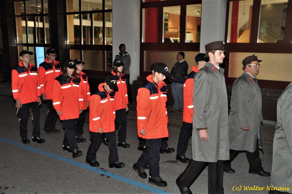 VOITSBERG, am 25.10.2019 Der Österr. Kameradschaftsbund Ortsverband Voitsberg organisierte am Vorabend des Nationalfeiertages traditionell die Totengedenkfeier zum Gedenken der gefallenen und verstorbenen Kameraden. Nach einer Gedenkmesse, zelebriert vom Seelsorger Mag. Josef Paier in der St. Josefskirche, marschierte der Zug, bestehend aus Abordnungen des Kameradschaftsbundes Voitsberg, der FF Voitsberg, der FF Krems, der Feuerwehrjugend Voitsberg, der Alt-Kainacher Ritterschaft und der Bergkapelle Hödlgrube-Zangtal zum Kriegerdenkmal in der Bahnhofstrasse. Der geschäftsführende Obmann Günter Salmutter konnte nach der Weihe der neuen Fahnenmasten durch den Geistlichen Mag. Paier zahlreiche Ehrengäste begrüßen: Bürgermeister Mag. (FH) Bernd Osprian, Vizebürgermeister Kurt Christof, Finanzstadtrat Franz Sachernegg, Gemeinderat Johann Rauchegger, Vizepräsident und Bezirksobmann Ing. Johann Harrer, EABI Rudolf Gargitter von der Feuerwehr, den Kommandanten der Polizeiinspektion Voitsberg Robert Zapfl, die Bergkapelle Hödlgrube-Zangtal sowie Personen aus der Bevölkerung, welche die Verbundenheit zum Kameradschaftsbund Voitsberg zeigen. In Ansprachen von Bgm. Bernd Osprian, BO Johann Harrer und dem Obmann Josef Ablasser wurden die Leistungen der gefallen und verstorbenen Kameraden beider Weltkriege gewürdigt und Kränze niedergelegt. Abschließend fand eine Defilierung des Gedenkzuges vor den angetretenen Ehrengästen statt. Bei einem gemeinsamen Abendessen unter Marschklängen der Bergkapelle Hödlgrube-Zangtal im Gasthaus Merta fand dieser Tag des Gedenkens seinen kameradschaftlichen Ausklang.