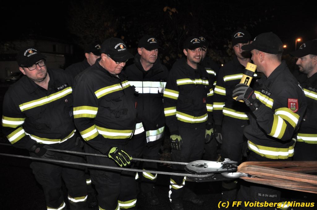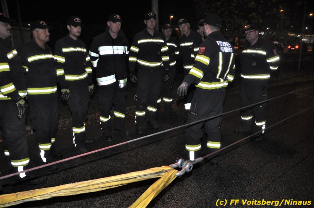 VOITSBERG, am 28.10.2019 Mittelpunkt der montäglichen Übung der FF Voitsberg war am 28. Oktober der Umgang mit einer Seilwinde, mit Anschlagmitteln und mit Umlenkrollen. Dabei wurde in praktischen Vorführungen der richtige Einsatz dieser Hilfsmittel bei technischen Einsätzen erprobt.