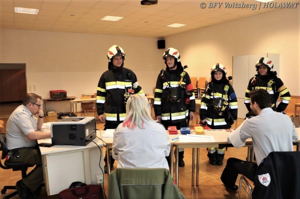 Unter den 25 teilnehmenden Trupps war auch ein Trupp aus Voitsberg mit Markus Donnelly, Victoria Fink, Michael Knöpfler und Martin Rapp. Als Bewerter fungierte HBI d. V. Hendrik Wolf. Herzliche Gratulation zur bestandenen Prüfung. Bei der Siegerehrung nahmen auch BR Ing. Klaus Gehr und ABI Alfred Jauk teil.