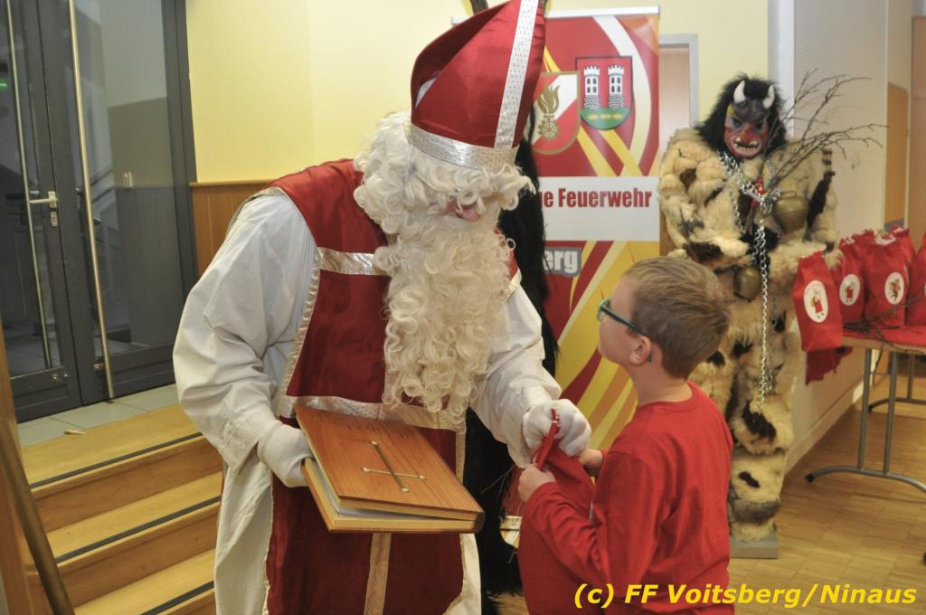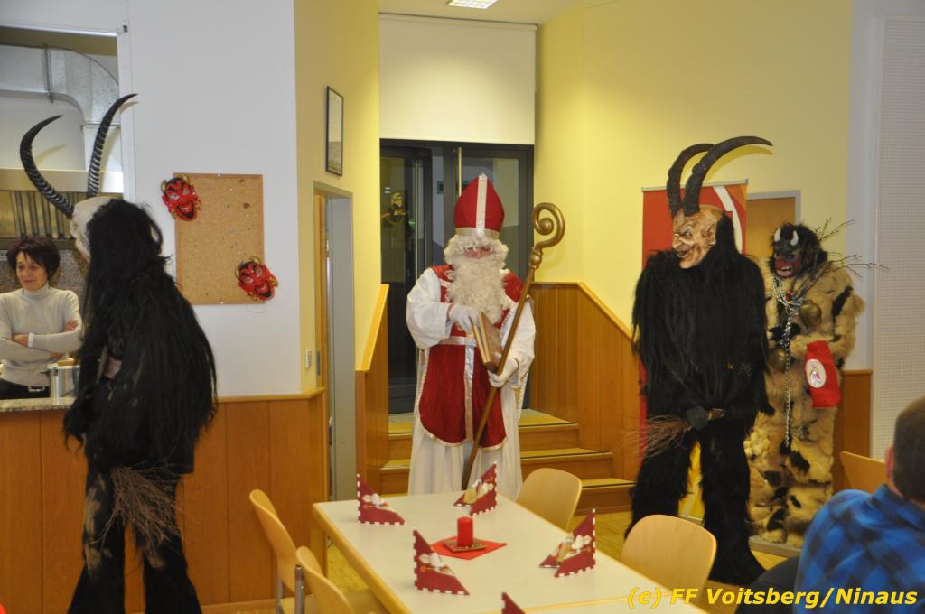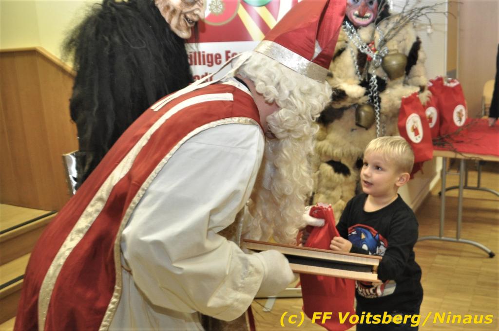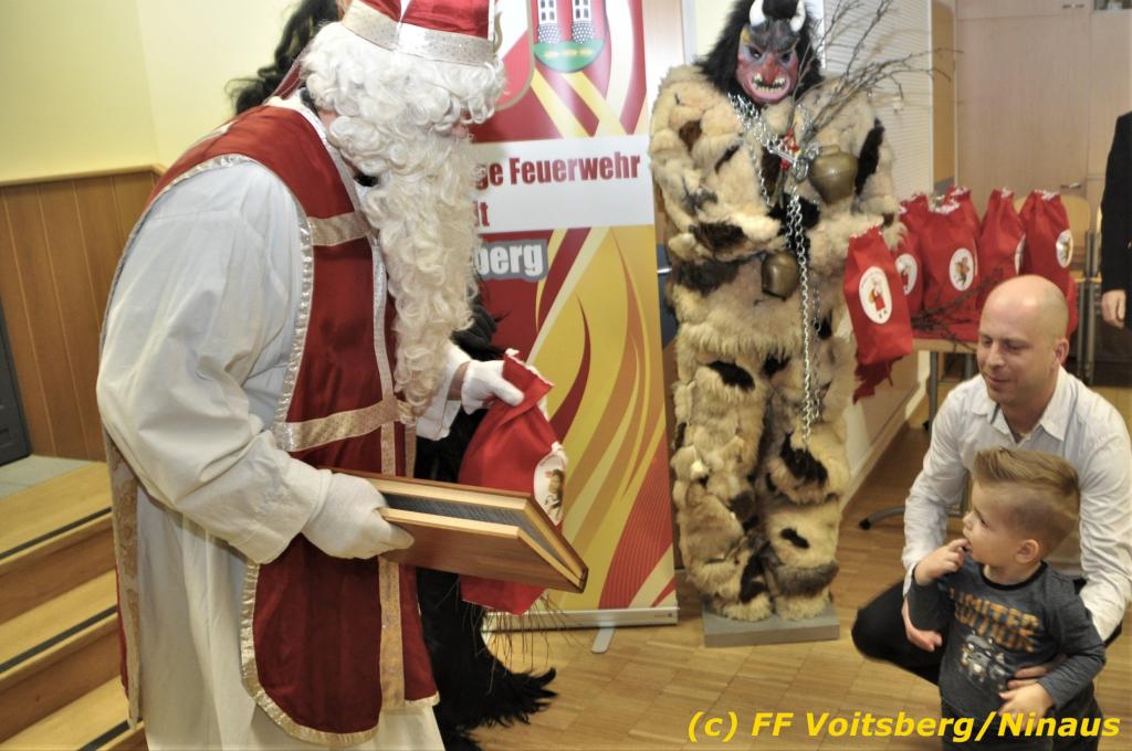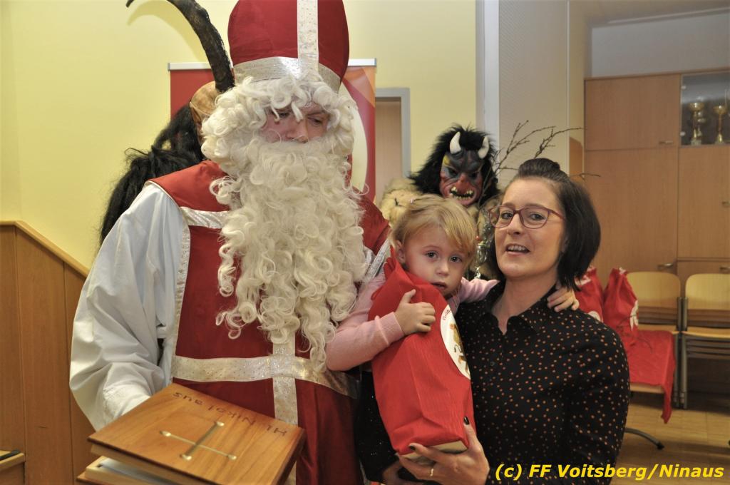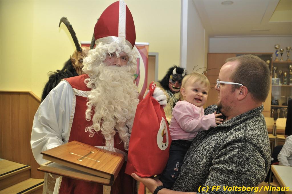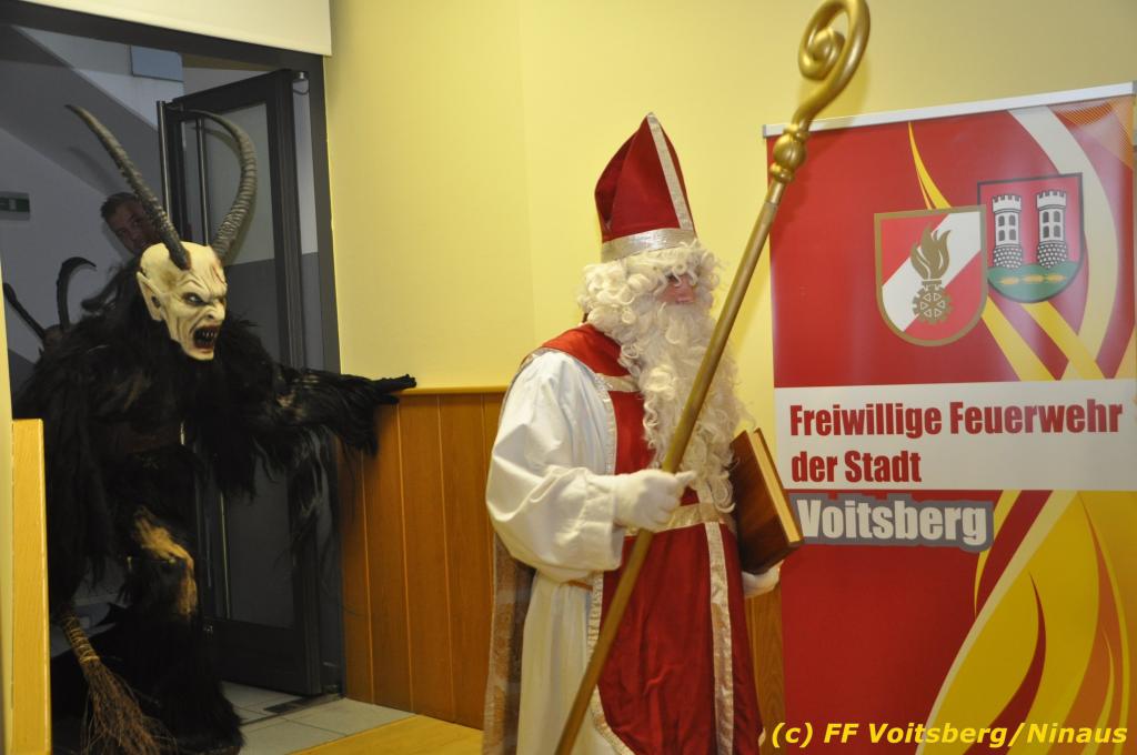 VOITSBERG, am 07.12.2019 Am Samstag, 7. Dezember 2019 versammelten sich die Kleinsten der Feuerwehrmitglieder mit ihren Eltern/Großeltern im Rüsthaus der FF Voitsberg in Erwartung des Besuches des Nikolaus und der Krampusse. Nach der Begrüßung durch Bernd Unger war es soweit. Der Nikolaus mit zwei Krampussen traten in den Raum und versetzten die Kinder in Staunen. Der Nikolaus verteilte, assistiert durch die Krampusse, an die aufgeregten Kinder Päckchen, welche von diesen wohlwollend entgegengenommen wurden. Als Erinnerung wurden viele Fotos gemacht. Im Anschluss wurden alle Anwesende zu einer kleinen Jause mit Getränken eingeladen und am „Kinderspielplatz“ wurde so manche Freundschaften und den Kindern geknüpft. Für die Vorbereitungen und der Durchführung dieser traditionellen Veranstaltung gilt der Dank im speziellen Waltraud Veigl auszusprechen, aber auch dem Kommando der FF Voitsberg für die Bereitstellung von Speis und Trank.
