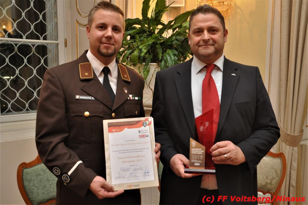 Von der Stadtfeuerwehr Voitsberg wurde ein Antrag zur Verleihung dieses Awards an die Firma Linde Material Handling Austria GmbH in Dobl-Zwaring gestellt.