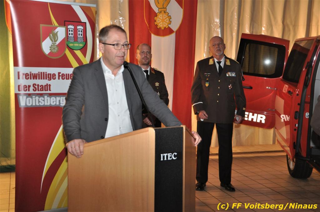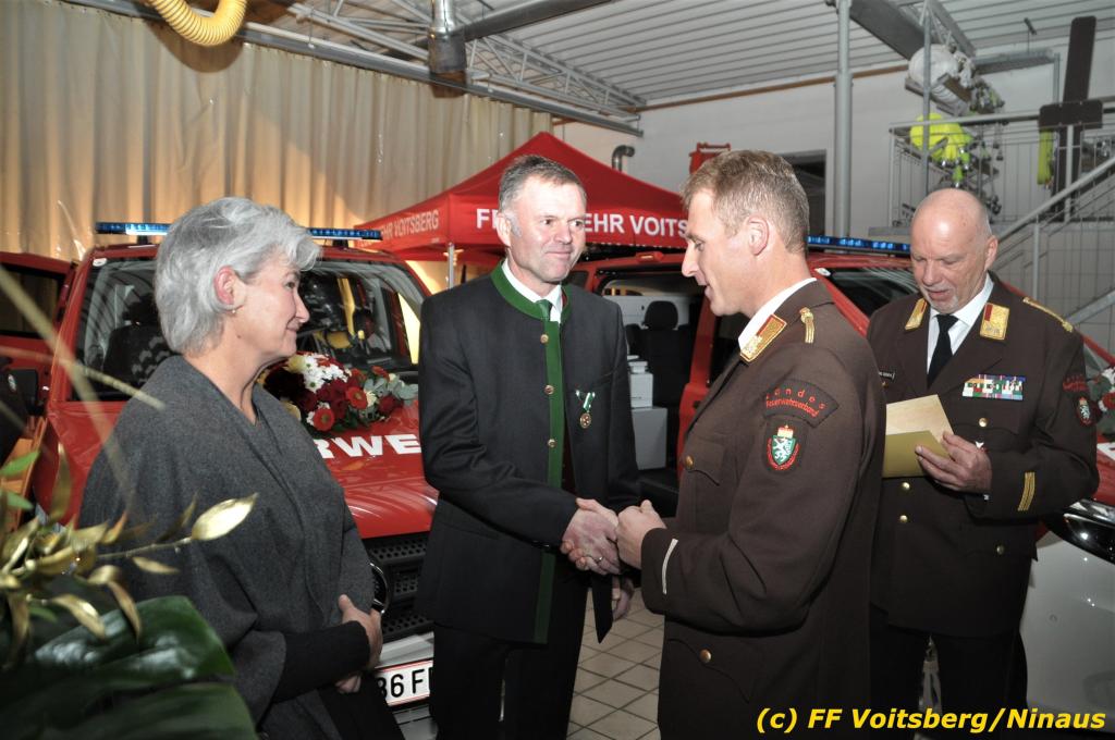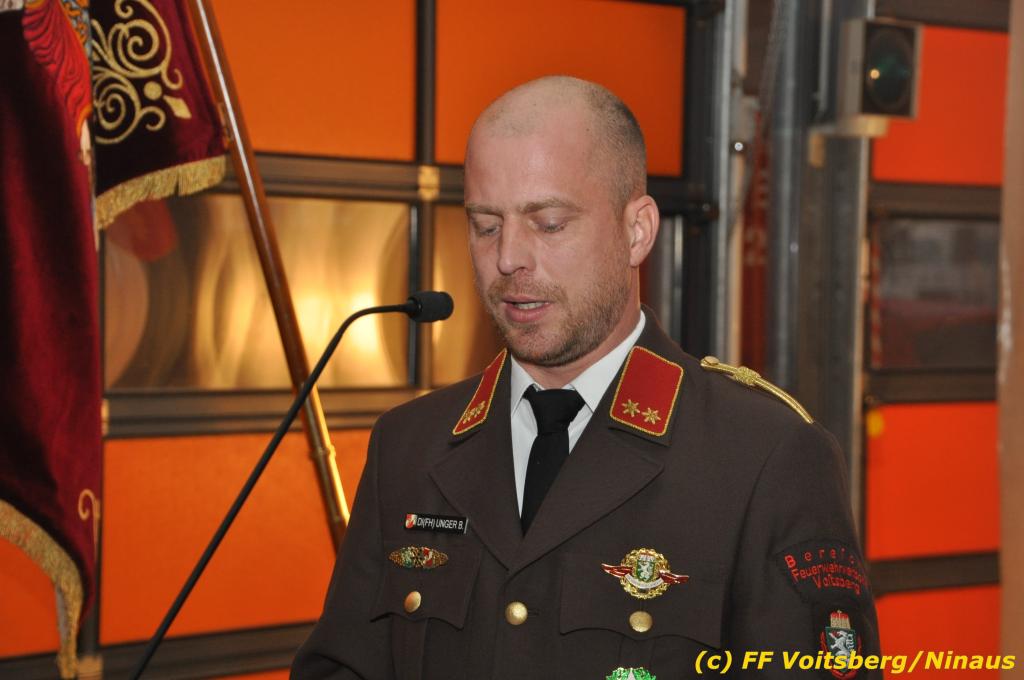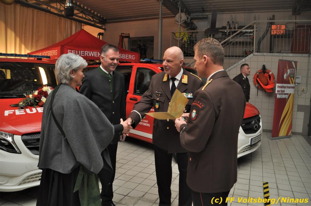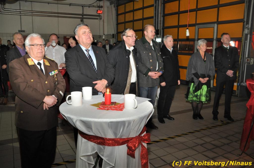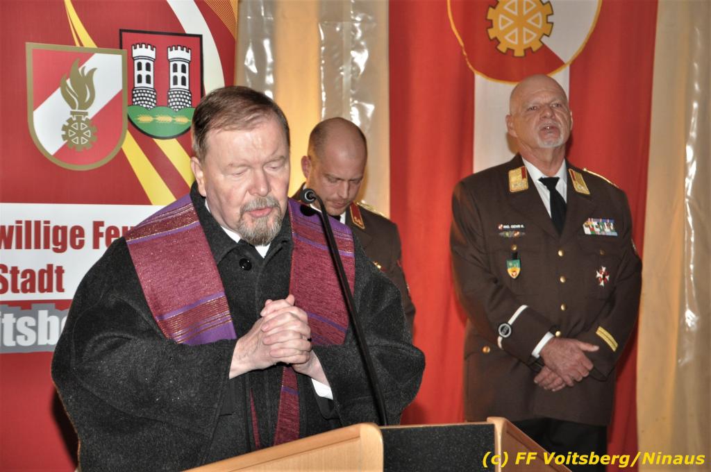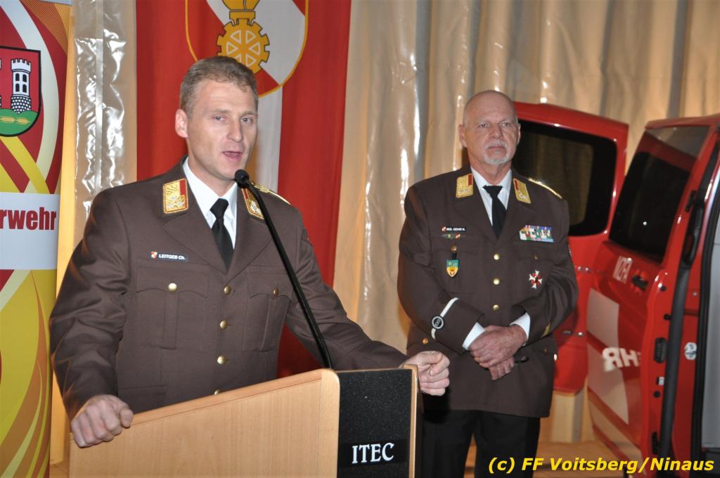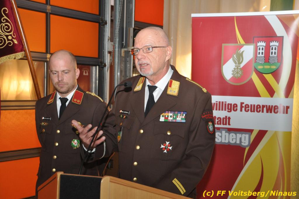 Wehrkommandant BR Ing. Klaus Gehr konnte mit Freude zahlreiche Ehrengäste begrüßen: Generalvikar und Feuerwehrmitglied Dr. Erich Linhardt, Bürgermeister Mag. (FH) Bernd Osprian, Vizebürgermeister Kurt Christof, Finanzstadtrat Franz Sachernegg, Stadtrat Markus Leinfellner, Altbürgermeister Ernst Meixner, BerFwKdt OBR Christian Leitgeb, ABI Alfred Jauk, EABI Rudolf Gargitter, ELM Richard Waidacher und Franz Patz von den Amateurfunkern. Ein besonderer Willkommensgruß galt der Familie Willi Schlosser vom gleichnamigen Obstbau in Voitsberg.