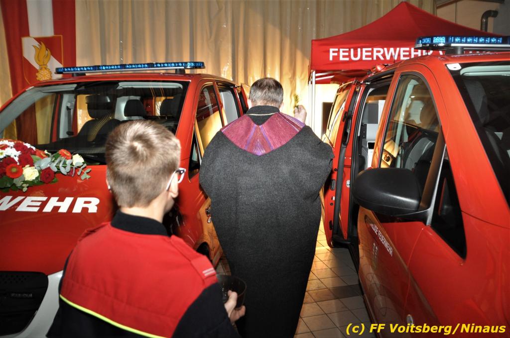 Danach wurden die Fahrzeuge von Generalvikar Erich Linhardt geweiht und seitens des Bürgermeisters Bernd Osprian an den Wehrkommandanten Klaus Gehr übergeben.