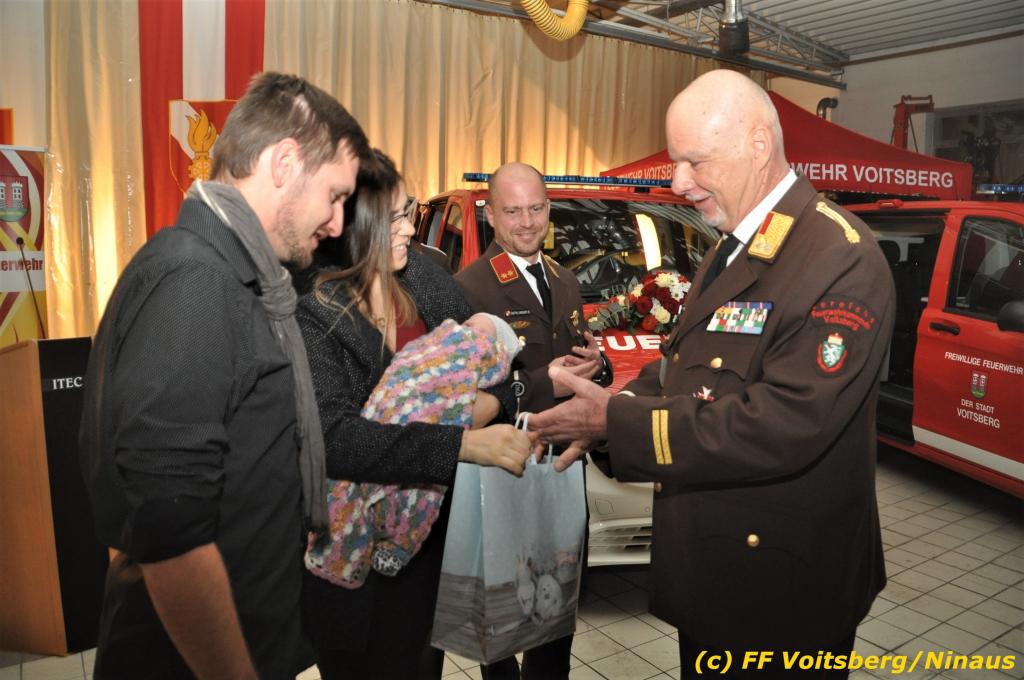 Das Feuerwehr-Ehepaar Daniela und Alexander Wallner wurden vor kurzem Eltern einer Tochter Annika. Aus diesem Anlass wurde ihnen seitens des Kommandos ein kleines Geschenk im Namen der FF Voitsberg übergeben. Herzliche Gratulation der Familie
