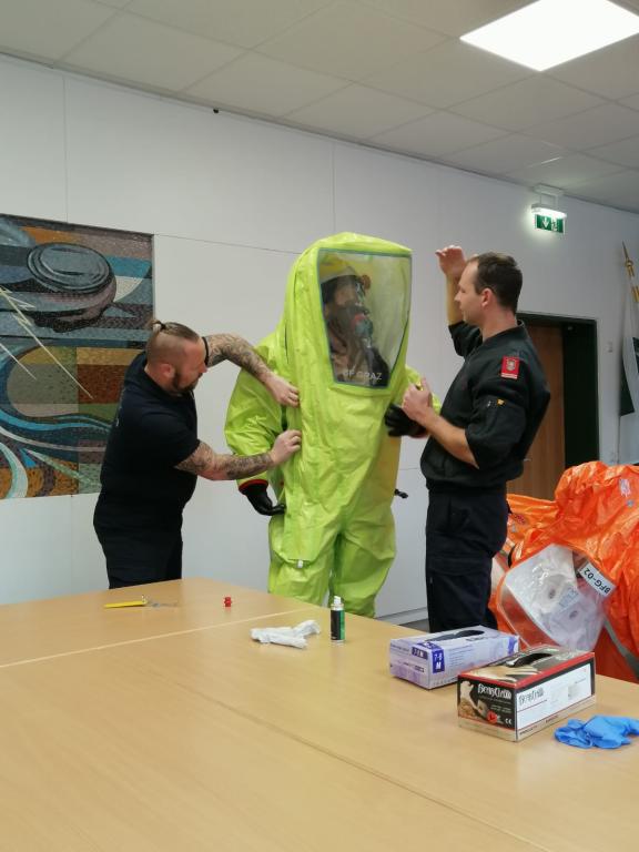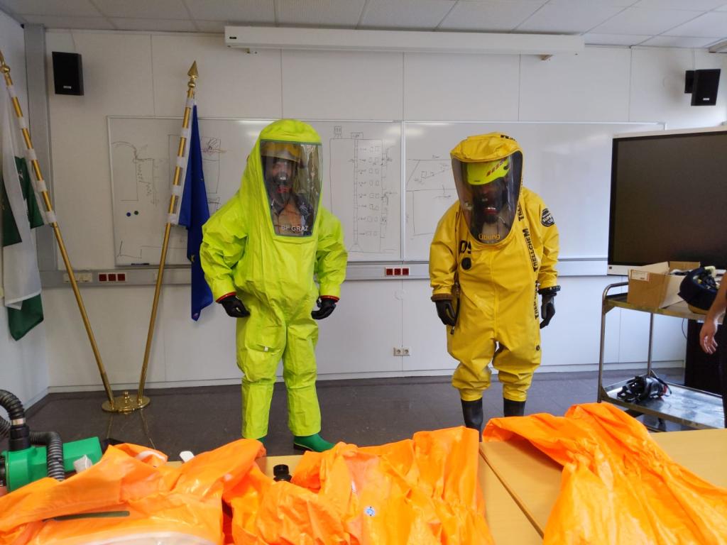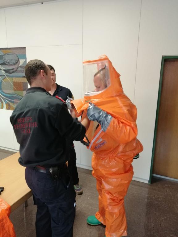 VOITSBERG, am 25.01.2020 Am 25.01.2020 wurde eine Übung für die CSA-Träger und Strahlenschutz-Spürer des Schadstoffzuges des Bereichsfeuerwehrverbandes Voitsberg unter den Verantwortlichen BIdF Philipp Krenn und BIdF Harald Kremaucz durchgeführt. Als Übungsobjekt konnte das Areal der Berufsfeuerwehr Graz gewonnen werden. Insgesamt neun Übungsteilnehmer der Feuerwehren Bärnbach, Ligist und Voitsberg wurden in Schutzanzüge der Schutzstufe 3 (Mehrweg und Einweg) sowie der Schutzstufe 2 (mit Gebläse und über Pressluftatmer) geschult. Vorgestellt wurden auch der WAB-Atemschutz und der WAB-Umweltschutz der BF Graz, welche kürzlich angeschafft wurden. Diese Übung dient einer möglichen Zusammenarbeit im Einsatzfalle mit Gerätschaften und Mannschaft der BF Graz, um Routine und Hintergrundwissen zu vermitteln. Die Kameraden zeigten bei dieser Übung viel Engagement und Interesse und waren am Ende des Tages über das Ergebnis sehr zufrieden. Ein besonderer Dank gilt der BF Graz für ihr Entgegenkommen und der unbürokratischen Bereitschaft zur Mitarbeit an dieser Ausbildung. Dank auch an die CSA-Träger des BFV Voitsberg für deren ständigen Bereitschaft, sich in laufenden Schulungen und Übungen weiterzubilden. Da diese Einheit bei Einsätzen einer großen körperlichen und psychischen Belastung ausgesetzt ist, bleibt als Hoffnung, dass diese Anzüge nur bei Übungen verwendet werden müssen. Abschließend Dank auch dem Bereichsfeuerwehrkommando Voitsberg unter OBR Christian Leitgeb und BR Ing. Klaus Gehr für die Unterstützung an dieser Übung und darüber hinaus. Text: Walter Ninaus Fotos: Harald Kremaucz
