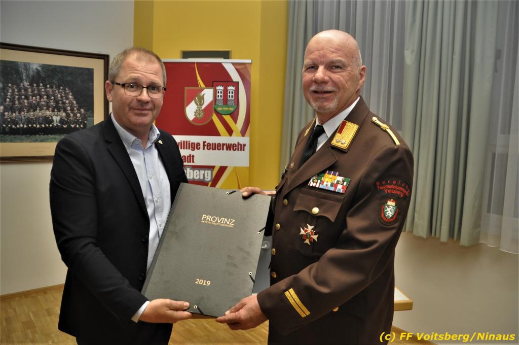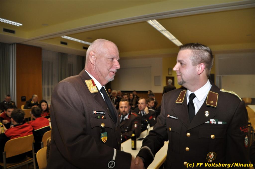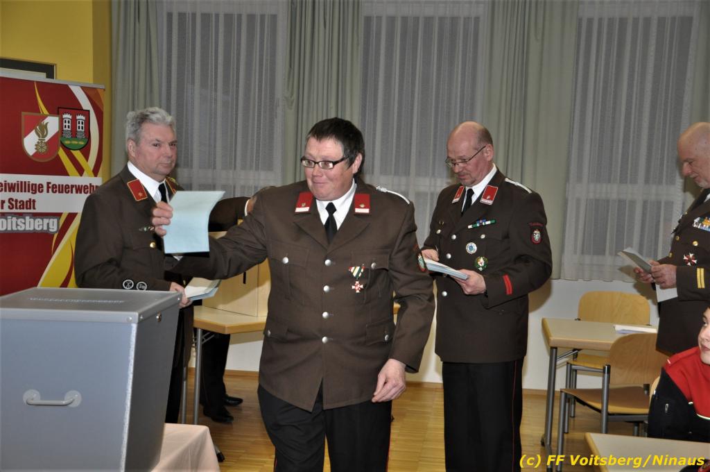 VOITSBERG, am 08.02.2020 Im Anschluss an die Wehrversammlung der Stadtfeuerwehr Voitsberg fand unter Vorsitz von OBR Christian Leitgeb eine Wahlversammlung statt. Da die Kameraden Klaus Gehr und Bernd Unger ihre Funktionen als Kommandant und Kommandant-Stellvertreter zur Verfügung stellten, musste eine Neuwahl für diese Funktionen durchgeführt werden. Zeitgerechte Anträge für Bernd Unger zum Kommandanten und Harald Kremaucz zu seinem Stellvertreter wurden beim BFV eingebracht.