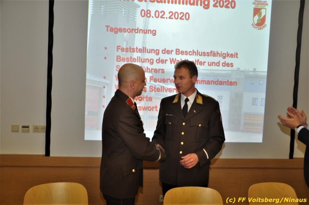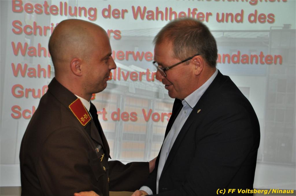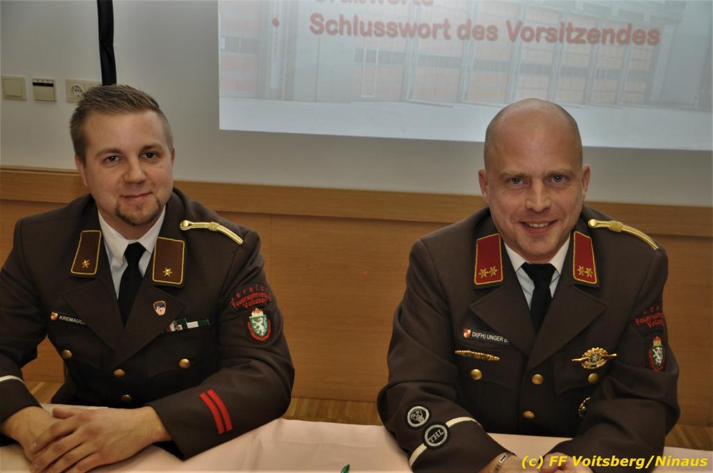 Bernd Unger wurde von den 50 Stimmberechtigten zum Kommandanten und Harald Kremaucz zur Wahl zum Kommandanten-Stellvertreter mit großer Mehrheit gewählt. Beide nahmen die Wahl an und versprachen gemeinsam mit der Mannschaft zum Wohle der Bevölkerung da zu sein.