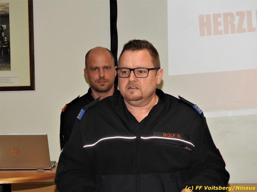 Nach der Begrüßung durch den Wehrkommandanten HBI Bernd Unger und seinem Stellvertreter OBI Harald Kremaucz erfolgte die Feststellung der Beschlussfähigkeit.