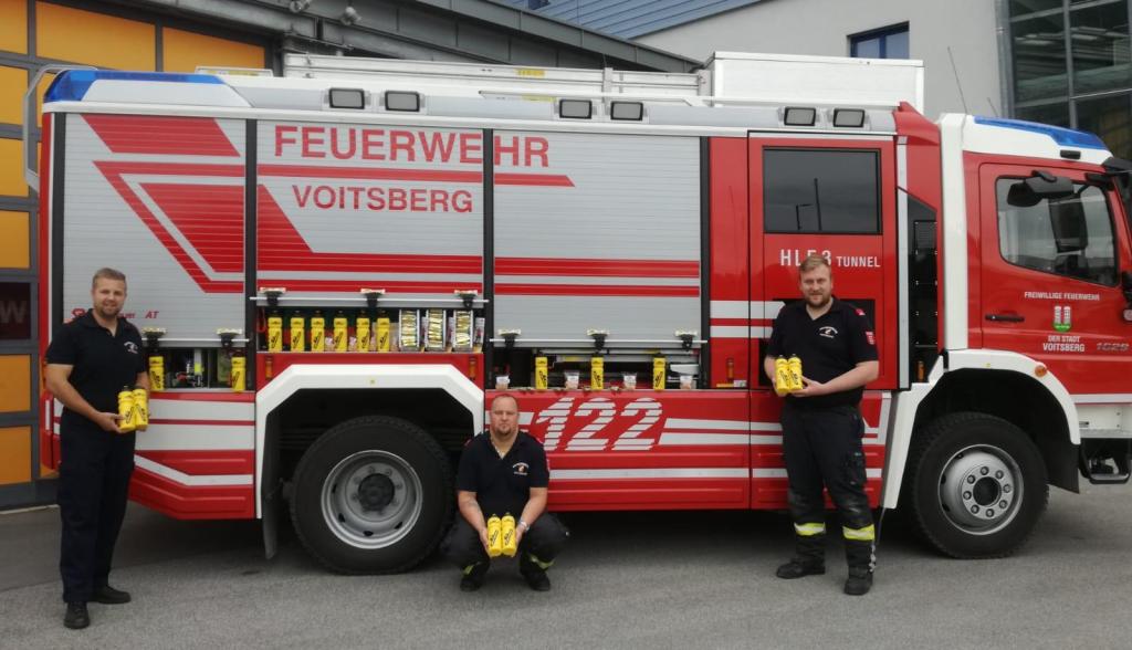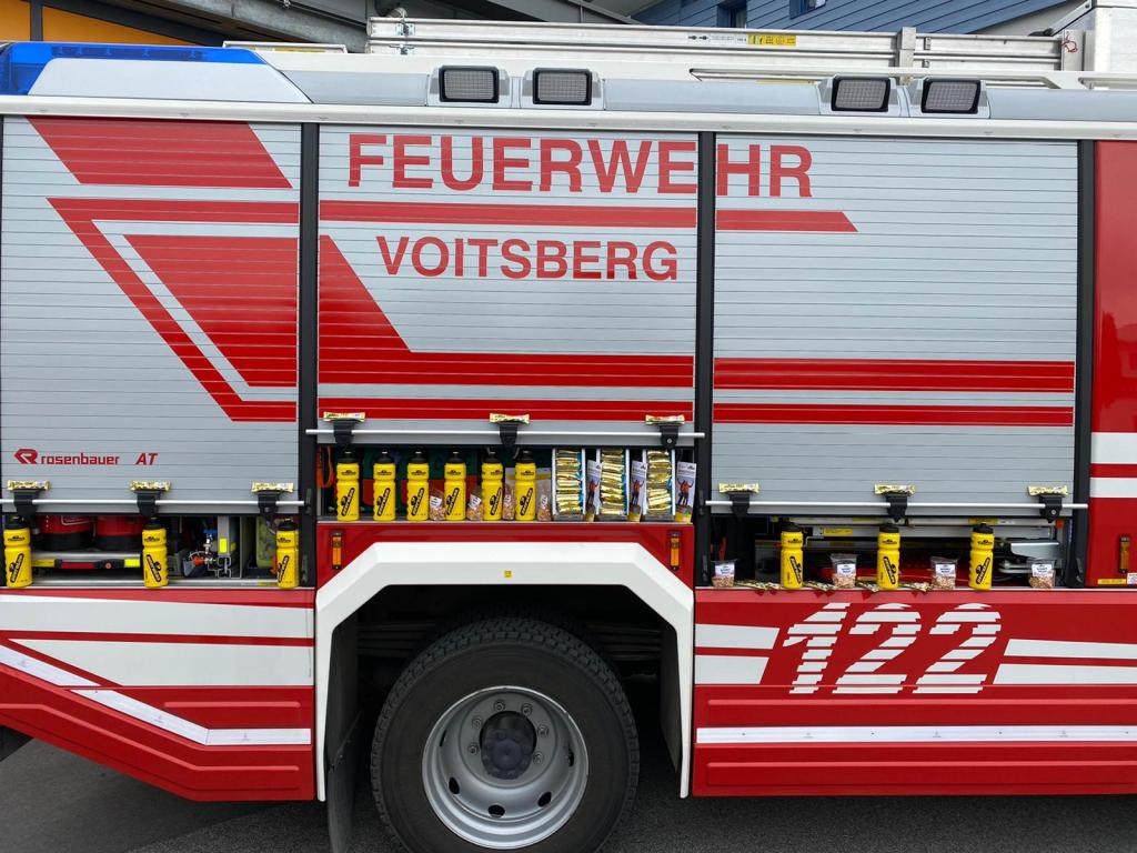 Die KameradInnen der FF Voitsberg können sich jetzt in Zukunft während und nach anstrengender Einsätze mit diesen gratis zur Verfügung gestellter Produkte stärken.