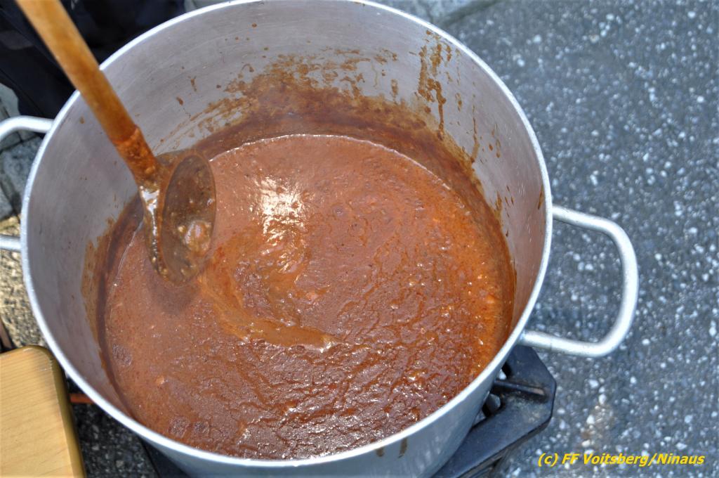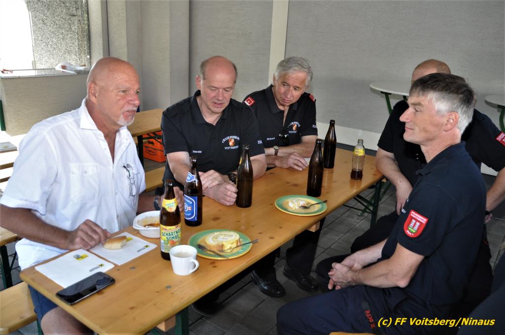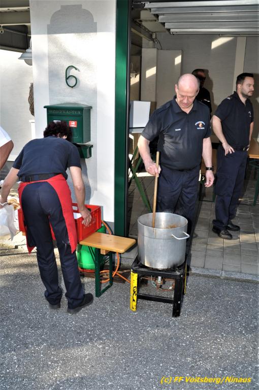 Nach der Übergabe von Erinnerungsgeschenken durch den Wehrkommandanten HBI DI (FH) Bernd Unger und seinem Stellvertreter OBI Harald Kremaucz, darunter einer Collage aus seiner über 40jährigen Feuerwehrmitgliedschaft, gab es für alle Anwesenden Kaffee mit Kuchen, Getränke und einer köstlichen Gulaschsuppe und einem gemütlichen Beisammensein.