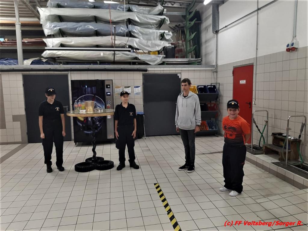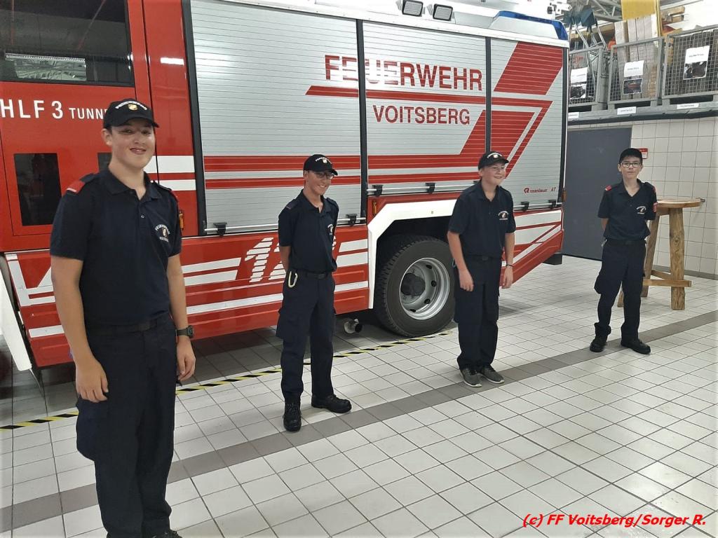 VOITSBERG, am 31.08.2020 Während die Aktiven im Rahmen der Montagsübung eine Begehung der Außenanlage der Berglandmilch durchführte, übte der Feuerwehrnachwuchs im Rüsthaus.