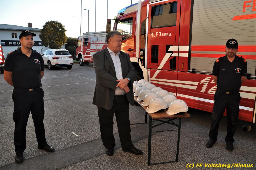 Finanzstadtrat Franz Sachernegg übergab namens des verhinderten Bürgermeisters Bernd Osprian die Helme an die sichtlich erfreuten Feuerwehrmitglieder.