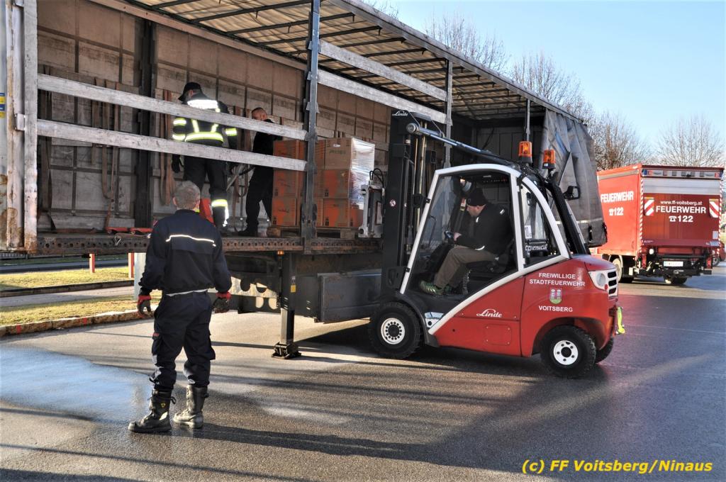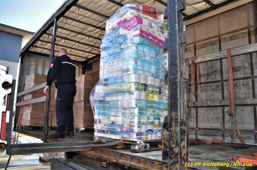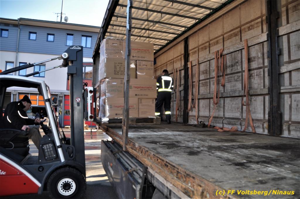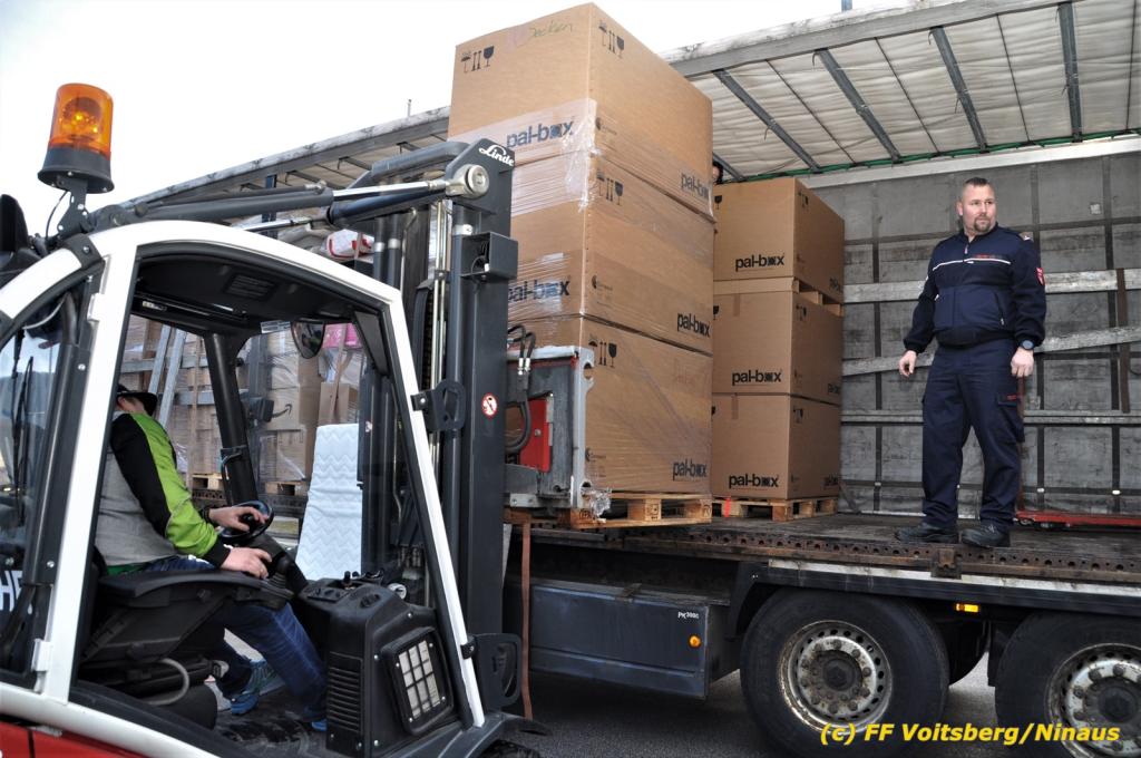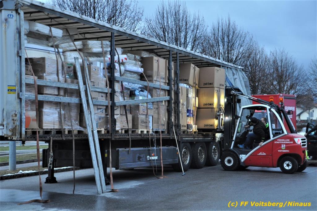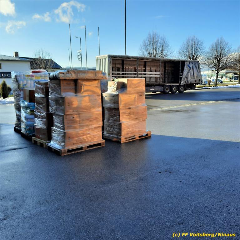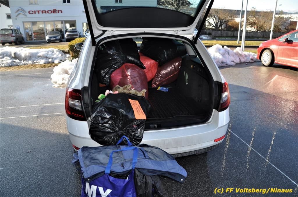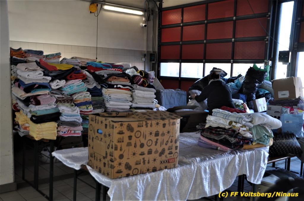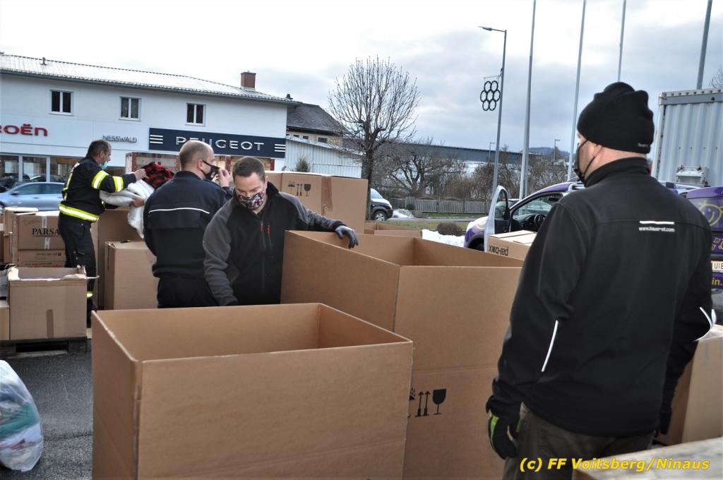 Die Aktion startete am Dienstag, 5. Jänner um 8 Uhr und die FF Voitsberg stand mit bis zu 25 KameradInnen bereit, die Waren von der Bevölkerung zu übernehmen, zu sortieren und zu palettieren. Es war aber so viel an Spendenfreudigkeit festzustellen, dass schon am Dienstag am Nachmittag die Spendenaktion, welche bis Mittwochmittag geplant war, aus Kapazitätsgründen abgebrochen werden musste. Der ursprünglich eingeplante Sattelschlepper war bereits voll beladen, sodass ein zweiter bestellt wurde.