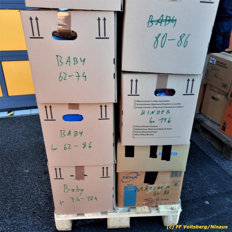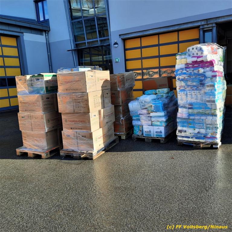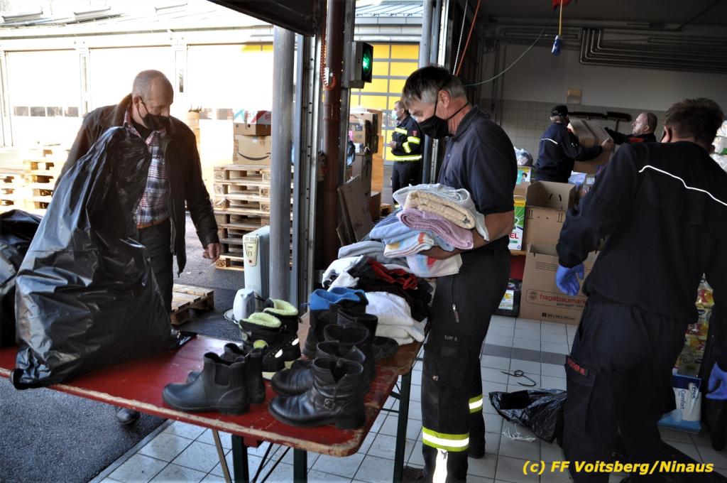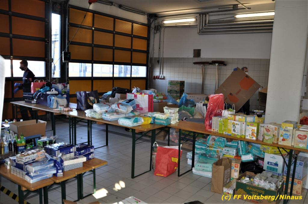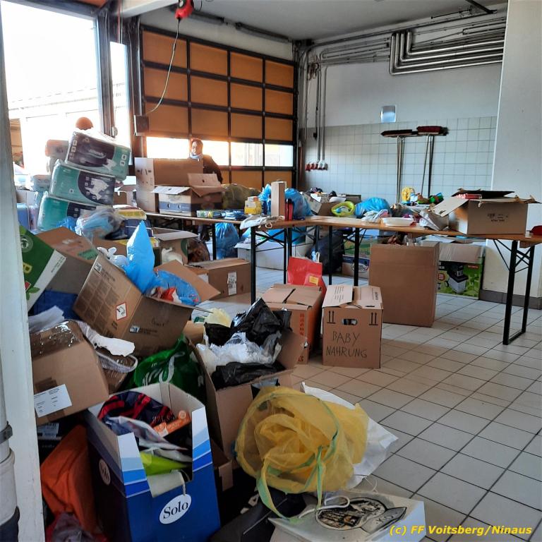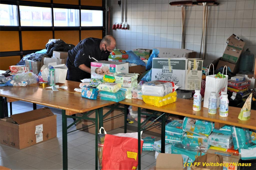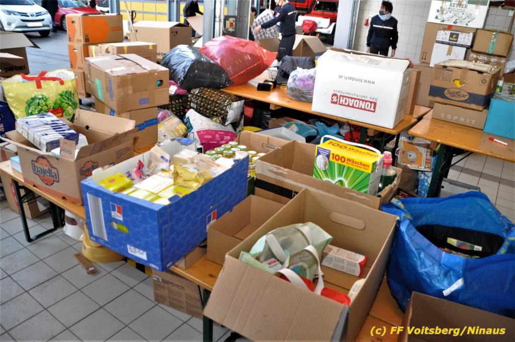 Zahlreiche Feuerwehren beteiligten sich an dieser Aktion, sammelten und brachten alles nach Voitsberg. Groß war der personelle Aufwand bei der Sortierung der Waren beim Feuerwehrhaus, was von den Voitsberger Feuerwehrmitgliedern gemeistert werden konnte, wofür herzlich DANKE zu sagen gilt.