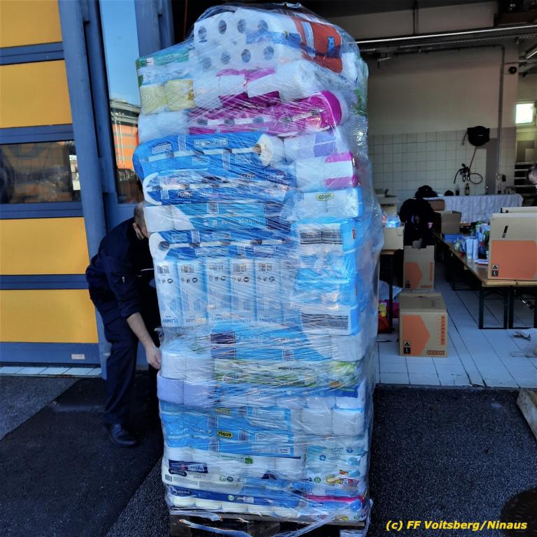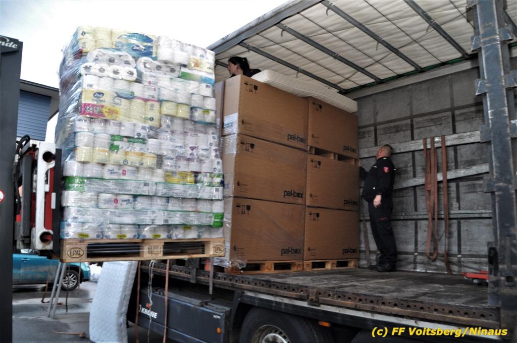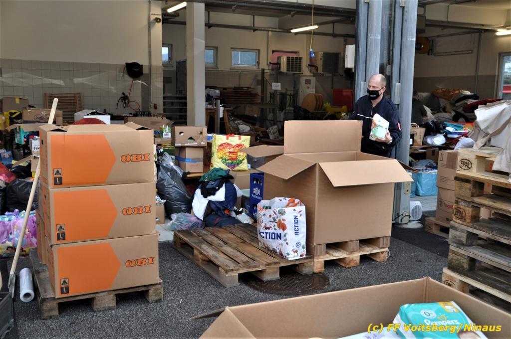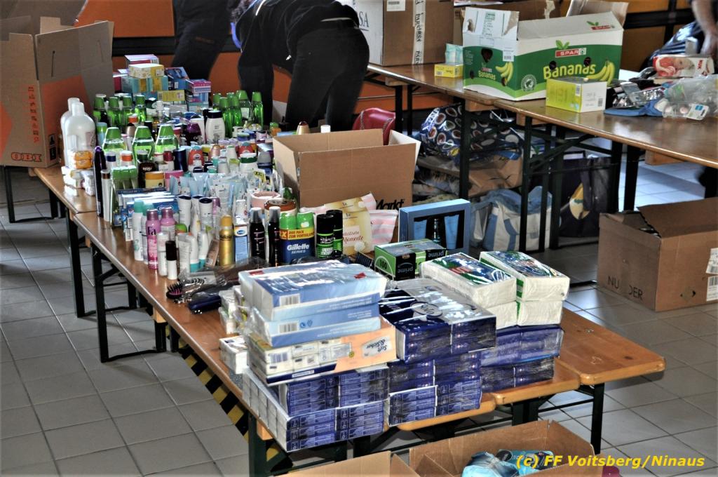 Unglaublich mit welchem Willen zur Hilfe die Bevölkerung ans Werk ging. So gab es sehr, sehr viele, welche zu Geschäften fuhren, dort die benötigten Waren kauften und bei der Sammelstelle beim Feuerwehrhaus Voitsberg abgaben. Aber auch sehr viel an nicht Benötigten aus Haushalten fanden den humanitären Weg zur Spende, sodass über 30 Tonnen für die betroffene Bevölkerung gesammelt werden konnte.